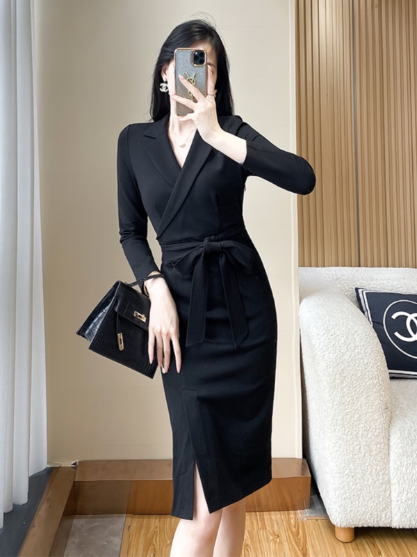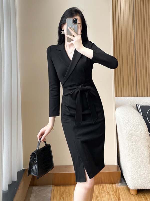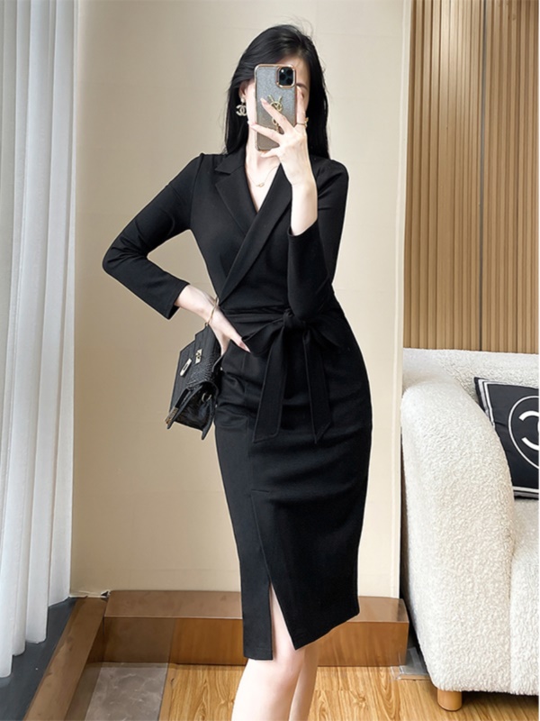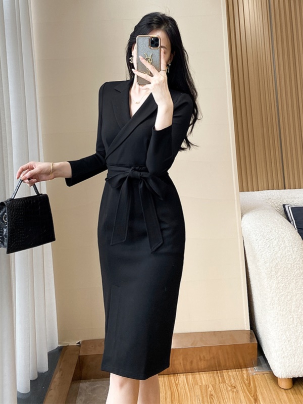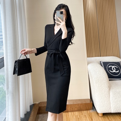 修身西装黑色连衣裙女秋季新款高级感通勤气质干练职业装包臀裙子