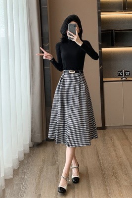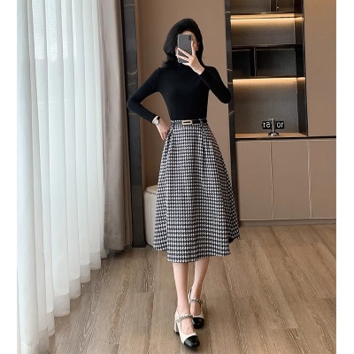 商品名称:千鸟格半身裙早秋穿搭配套装两件套2025小香风时尚气质裙子高级感