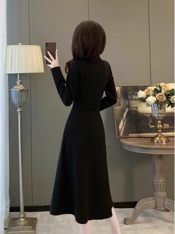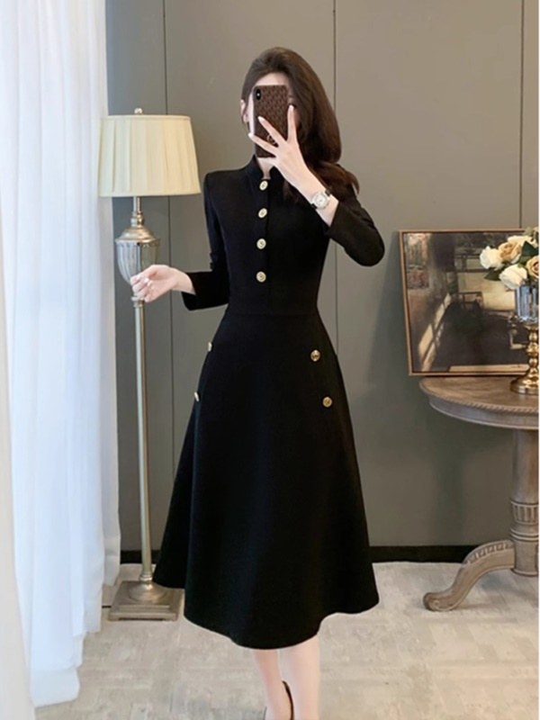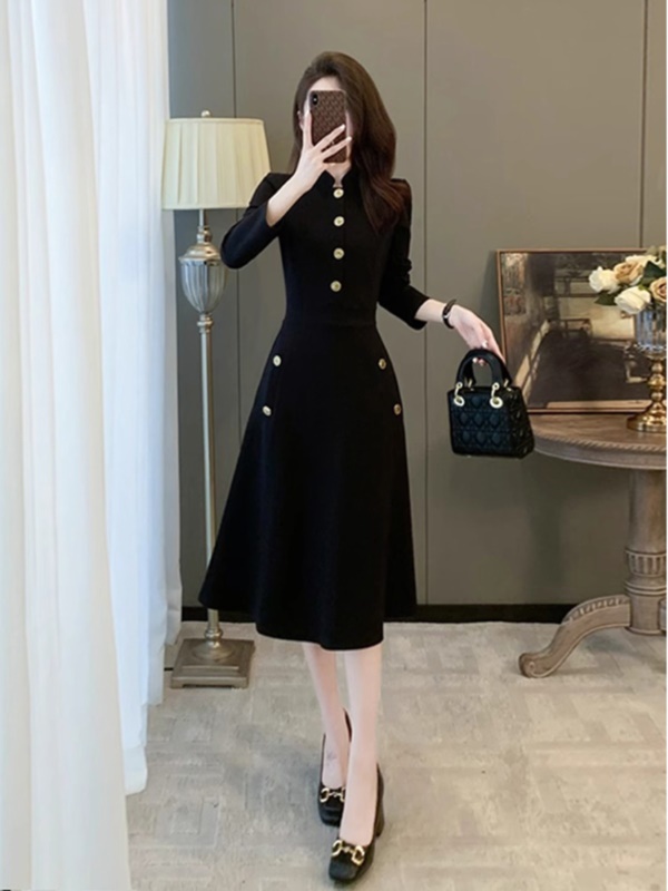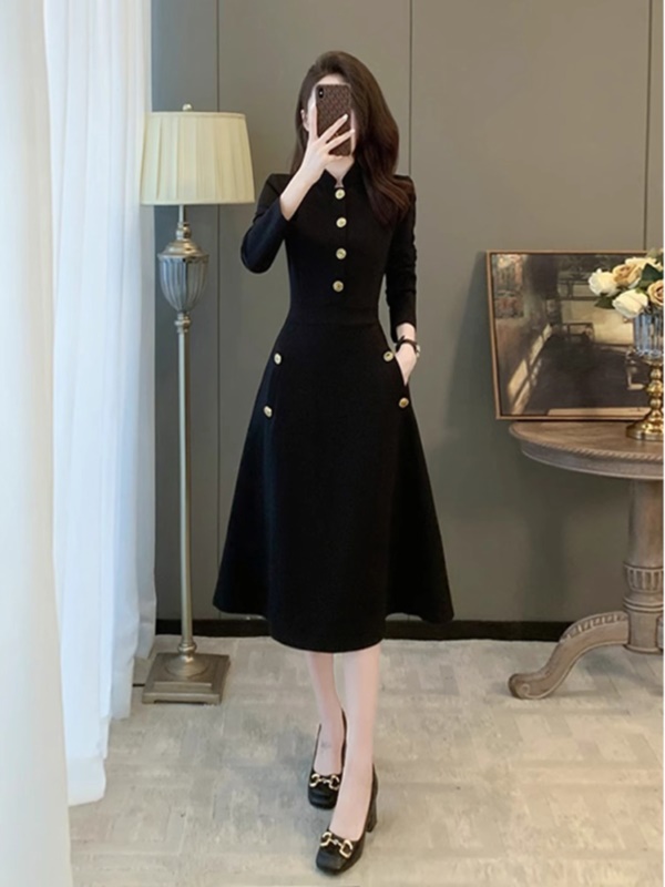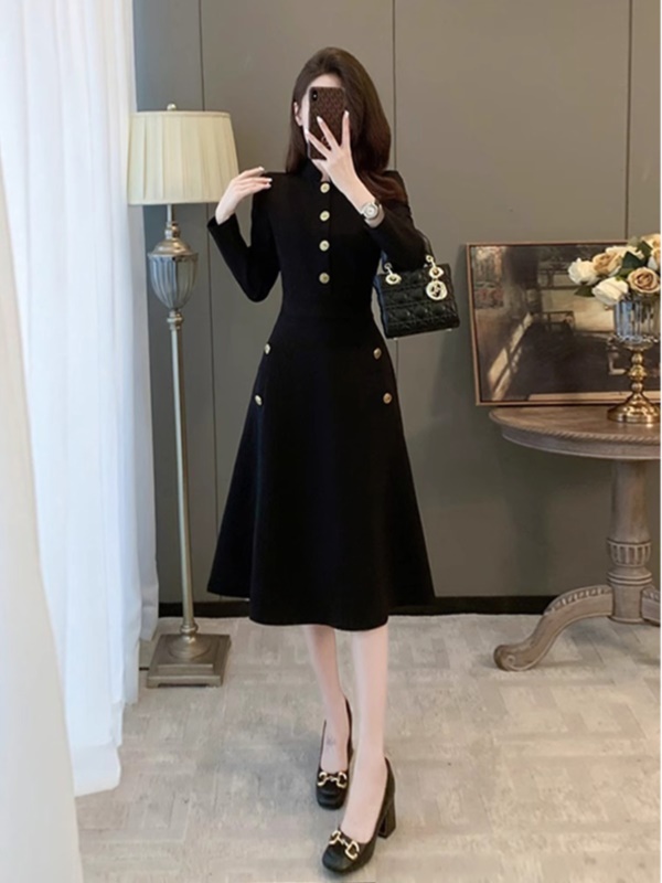 小香风收腰显瘦气质法式黑色高级感连衣裙子秋季女装赫本风小黑裙