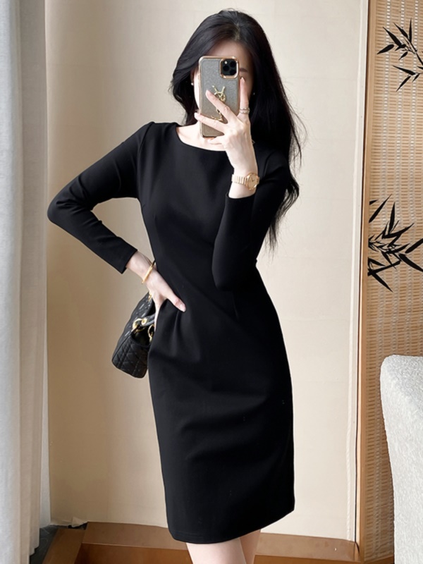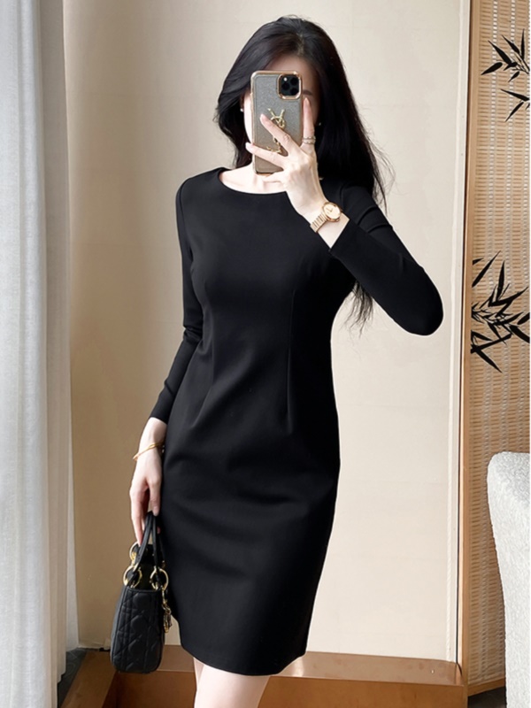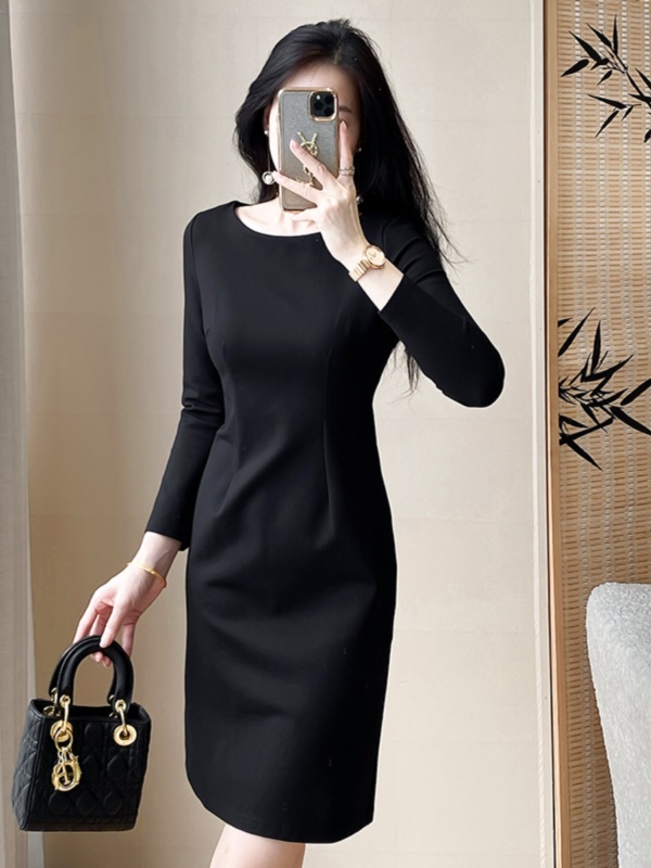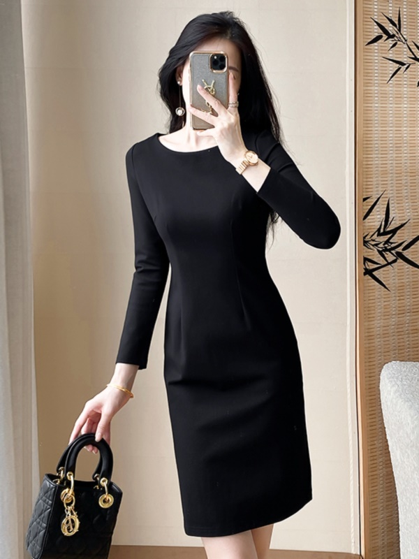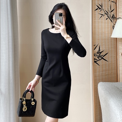 商品名称:高级感黑色修身显瘦连衣裙2025新款早秋女装气质包臀小黑裙赫本风
