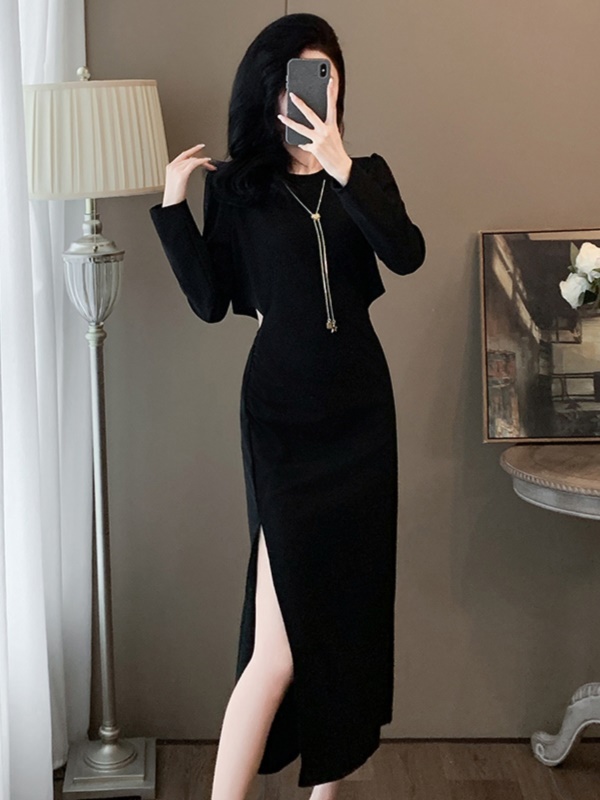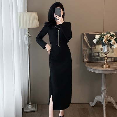 秋冬新款宽松显瘦白色针织连衣裙女中长款打底毛衣裙配大衣的内搭
