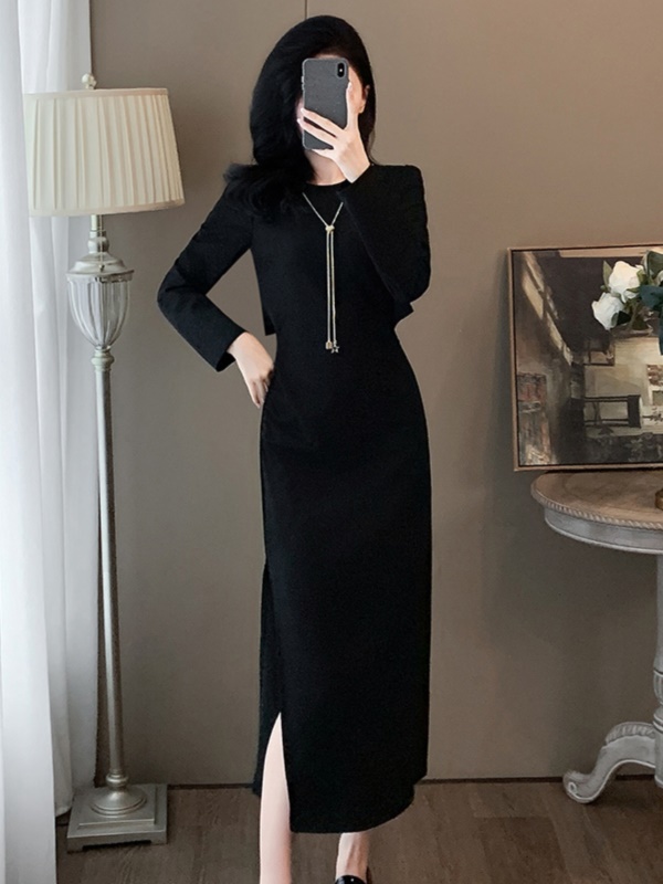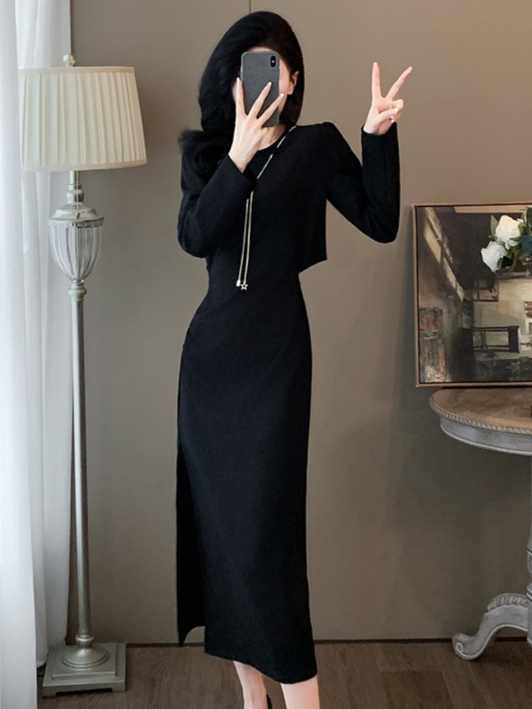 2025早秋新款法式赫本风小黑裙优雅高级感露腰修身包臀黑色连衣裙