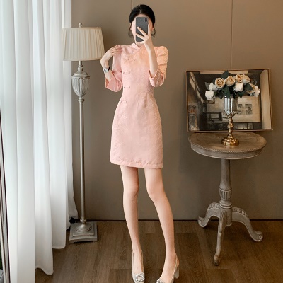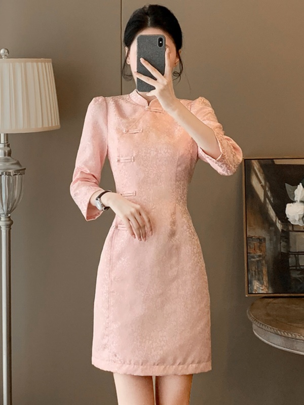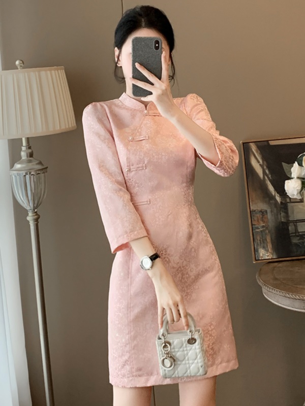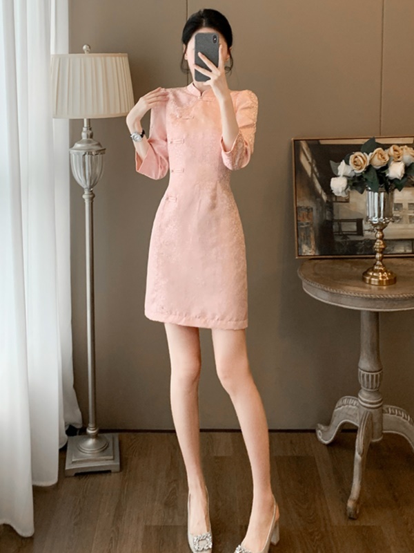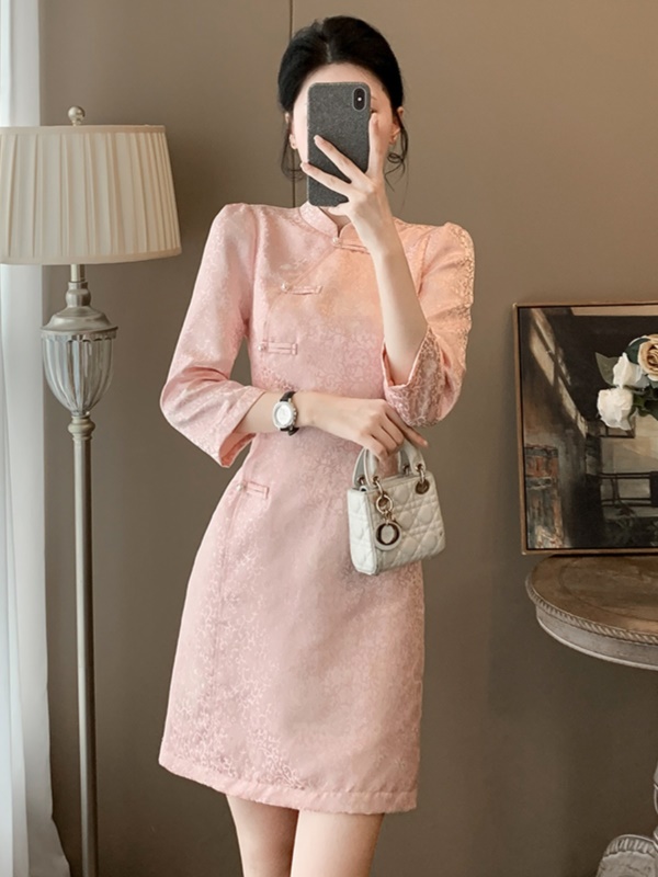 新中式国风高级感粉色连衣裙女装2025秋季新款气质宴会礼服旗袍裙