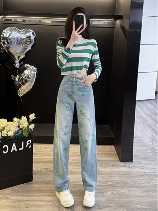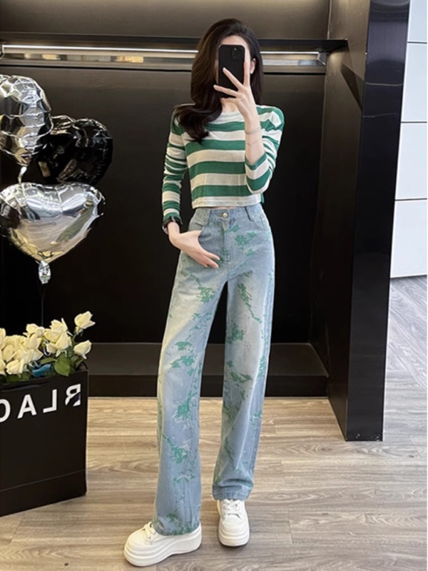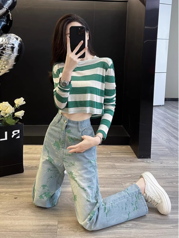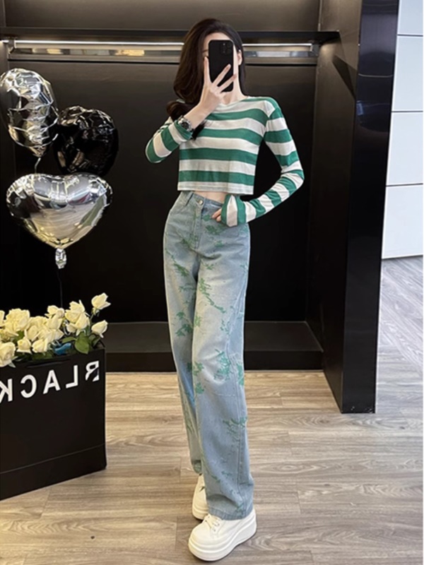 [颜色分类:条纹上衣+蓝色牛仔裤 尺码:M]