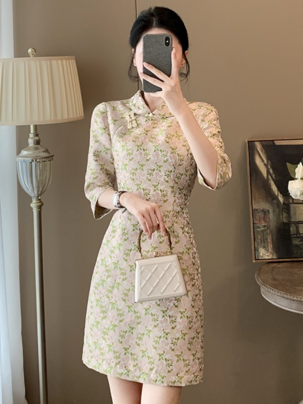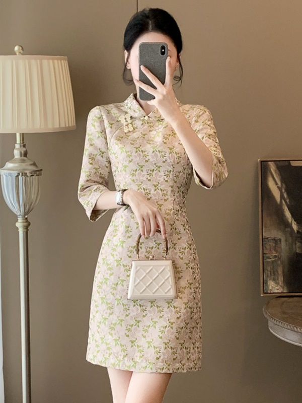商品名称:新中式国风高级感连衣裙女装2025秋季新款早秋气质礼服收腰旗袍裙
