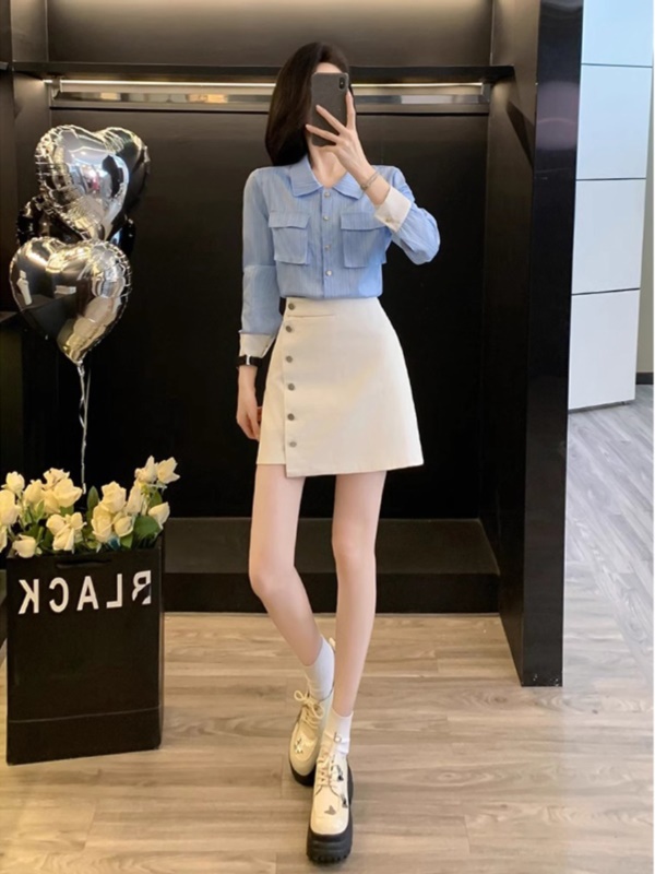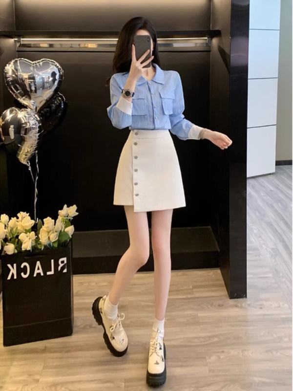 商品名称:一整套早秋穿搭时尚减龄洋气小个子显高网红职业衬衫短裙两件套女