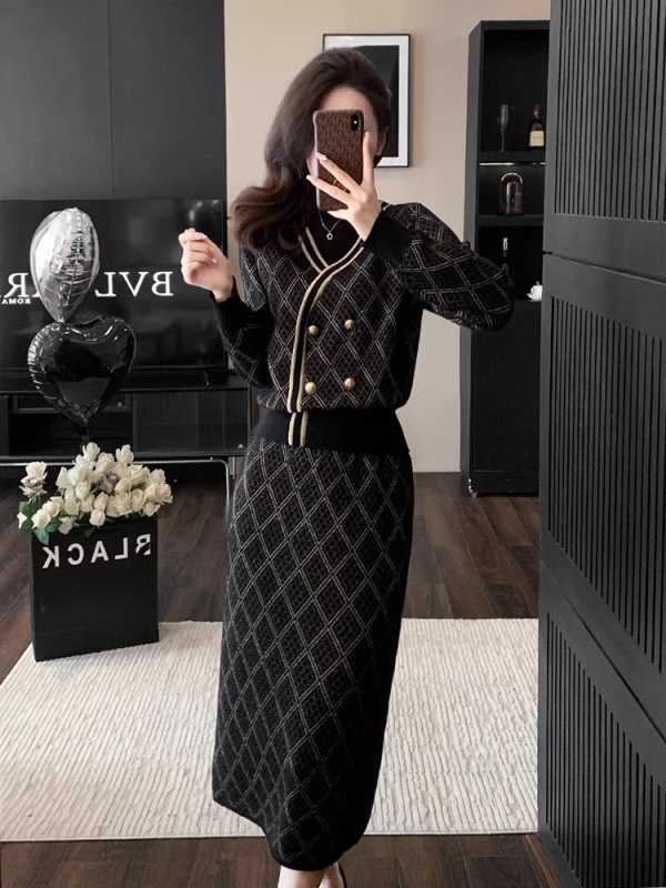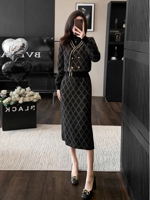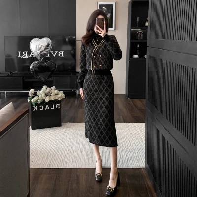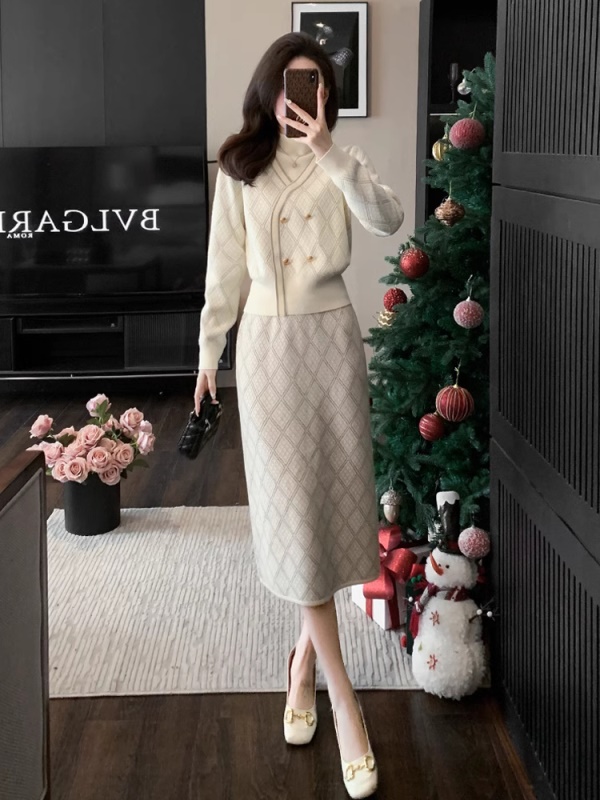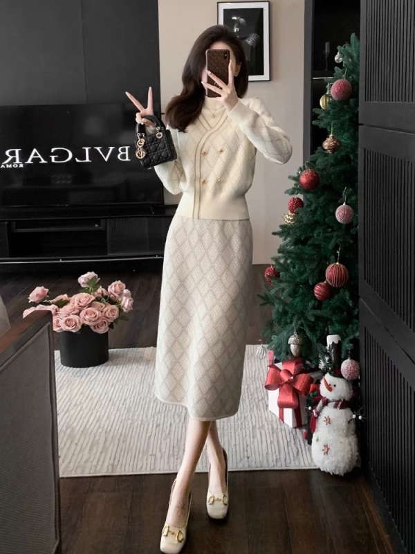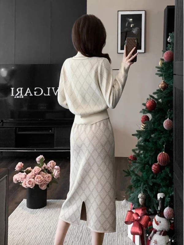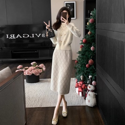 商品名称:杏色高级感针织半身裙套装女秋冬2025新款显瘦气质穿搭毛衣两件套