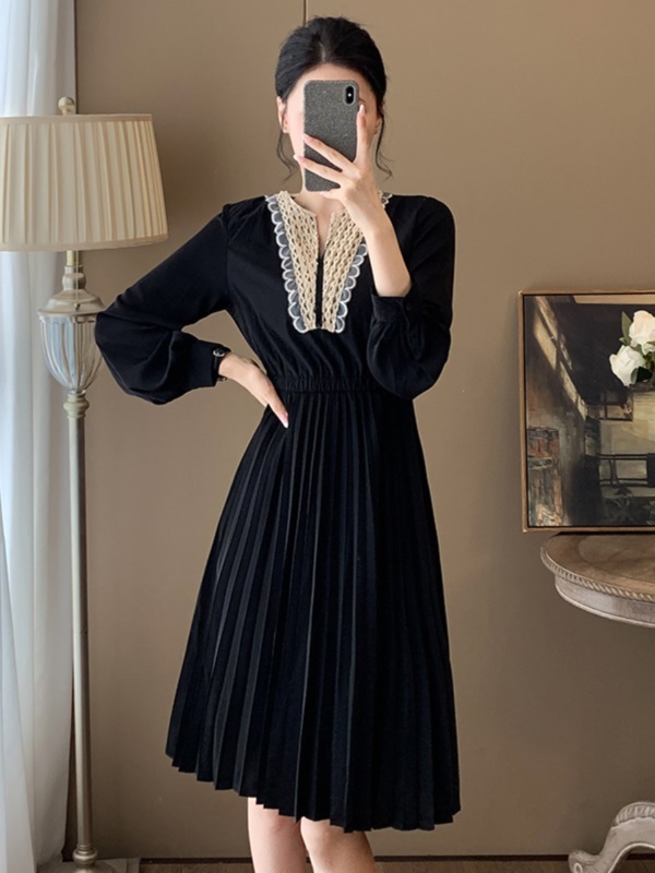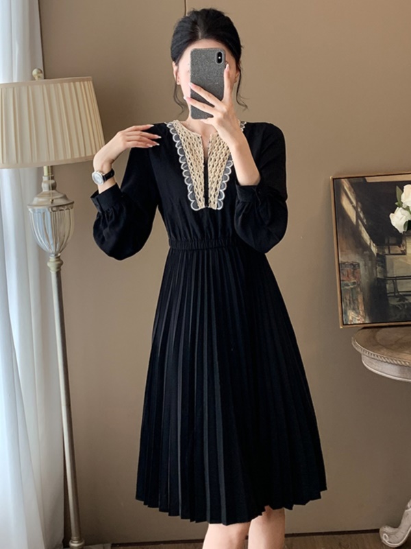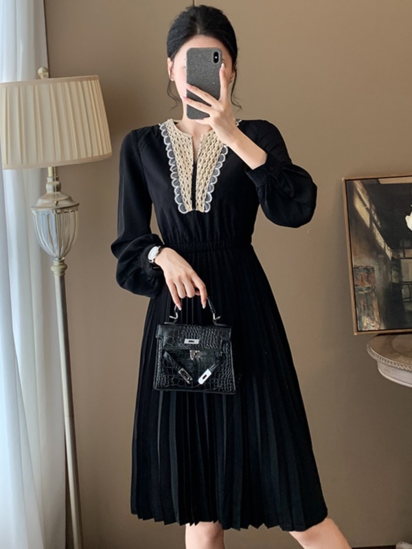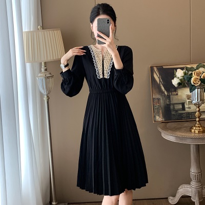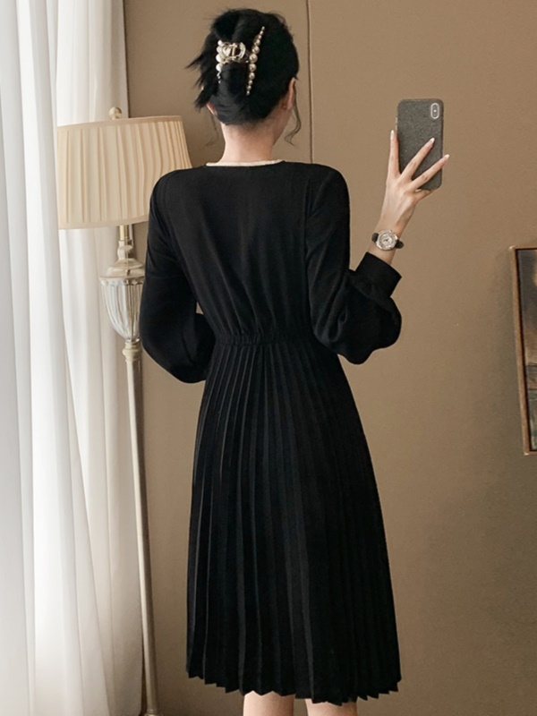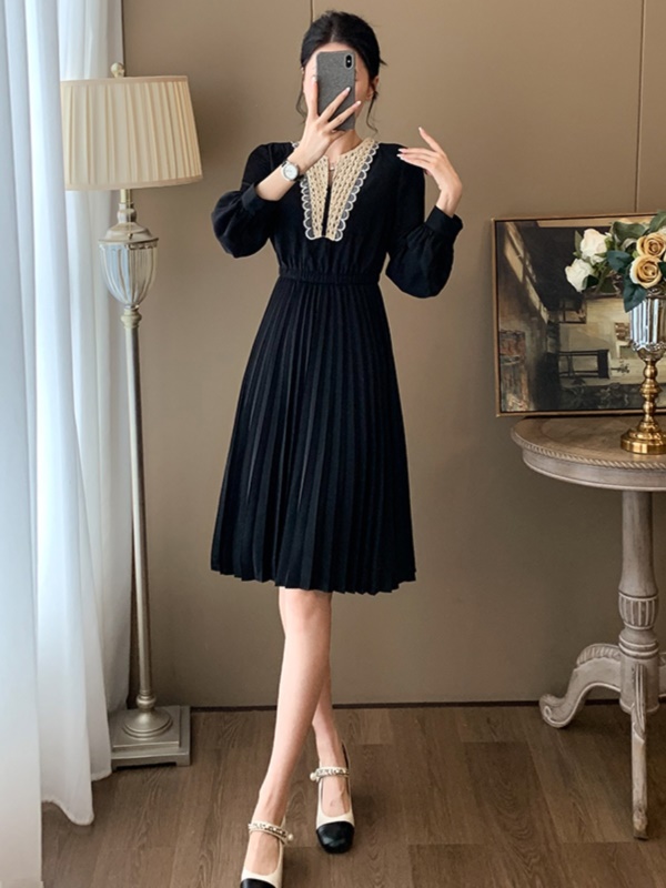 2025早秋季新款时尚小香风气质百褶连衣裙显瘦高级感赫本风小黑裙