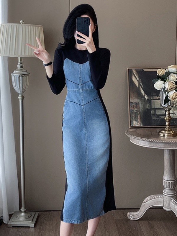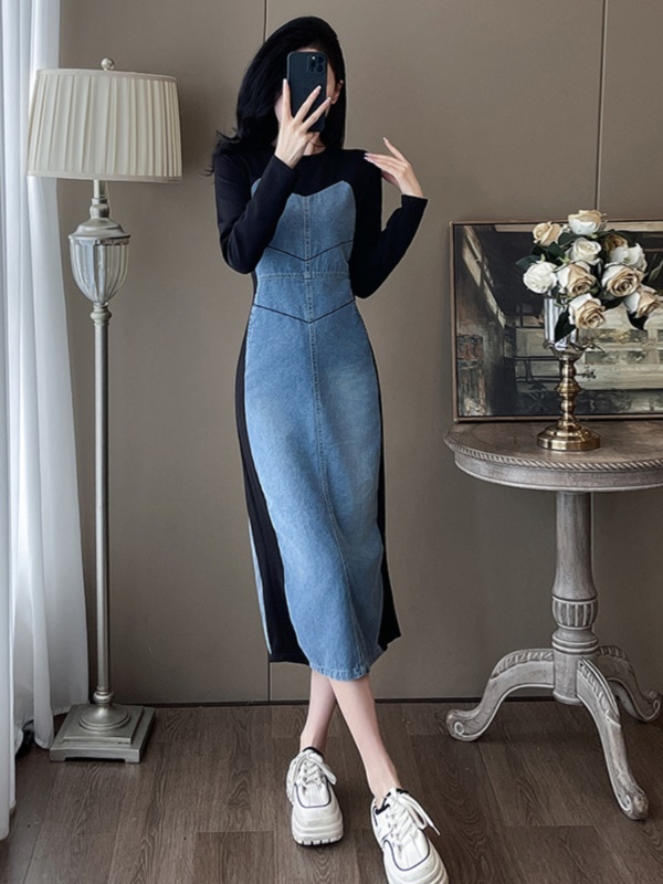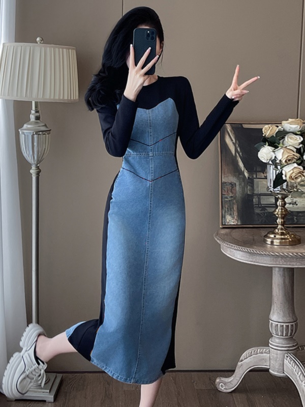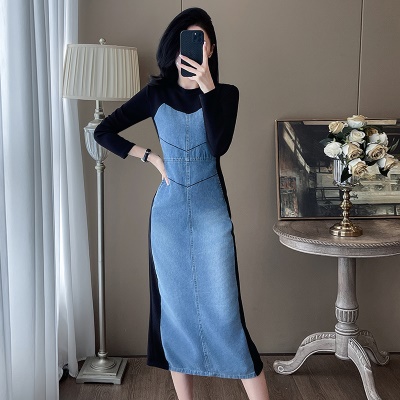 商品名称:早秋轻奢高级感牛仔连衣裙2025秋季新款修身显瘦大牌高端包臀裙子