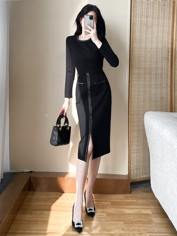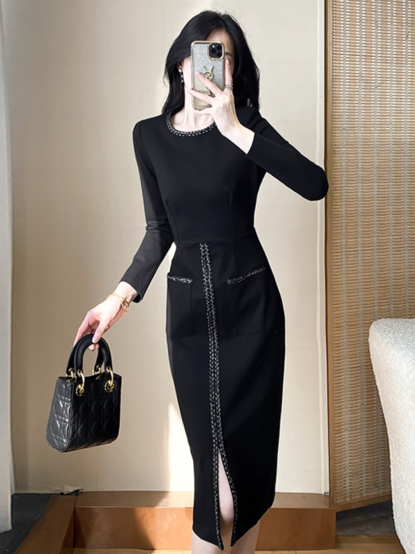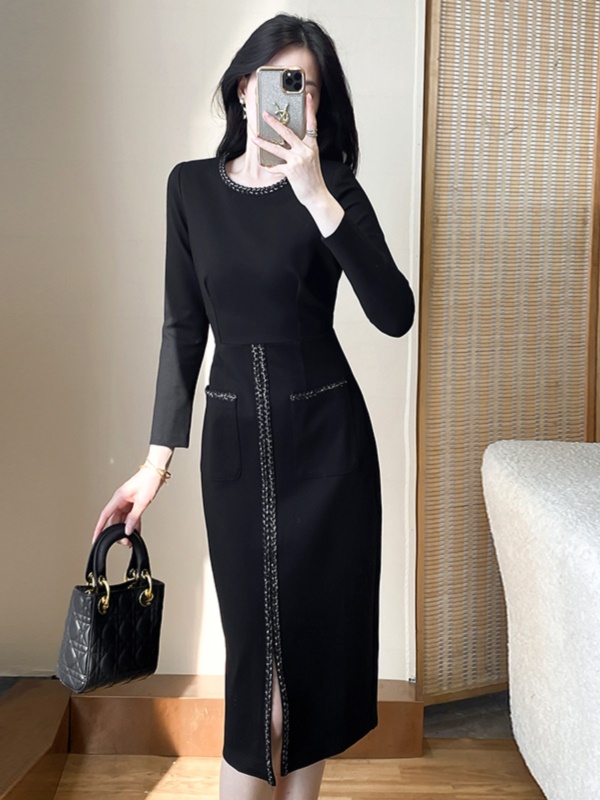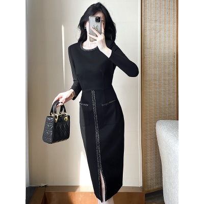 高级感气质黑色包臀连衣裙女春季2025新款显瘦小香风通勤职业裙子