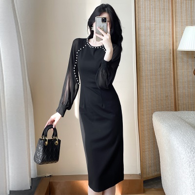 时尚职业气质女神范包臀裙女通勤秋季轻奢黑色连衣裙赫本风高级感