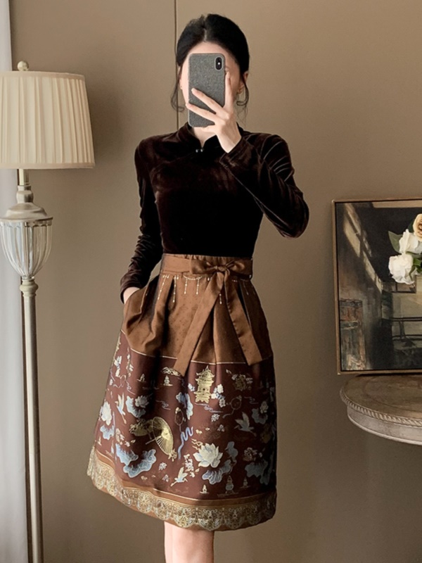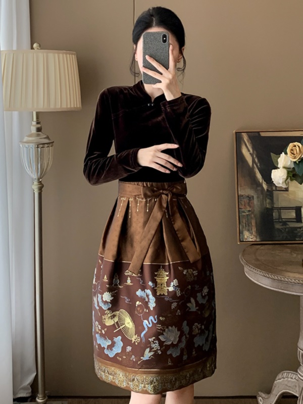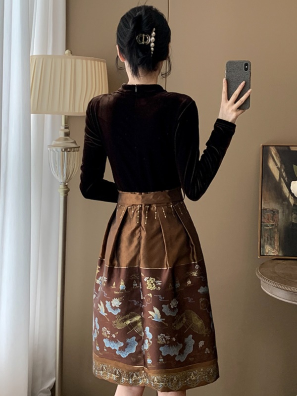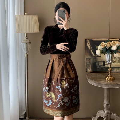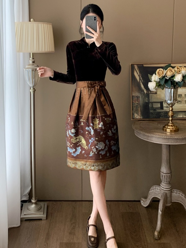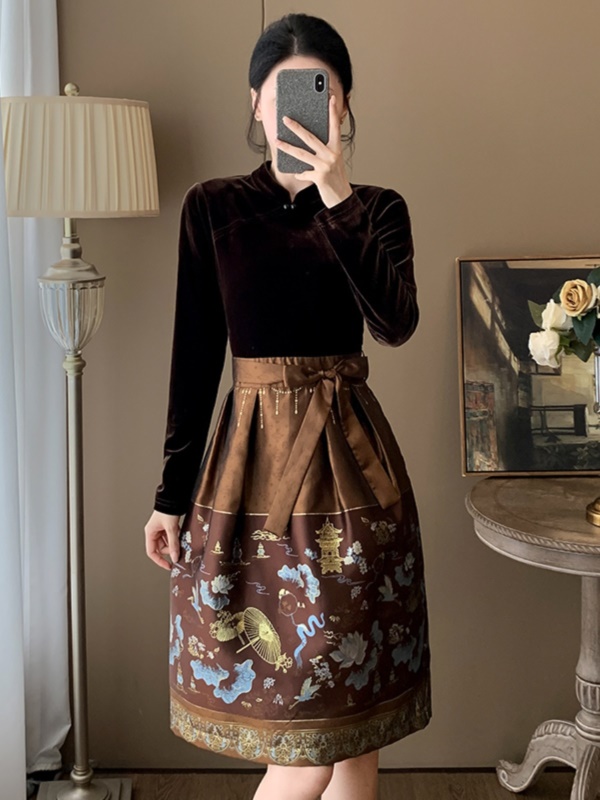新中式长袖汉服连衣裙秋装新款高级感刺绣提花旗袍改良宴会晚礼服