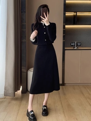 小香风时尚针织套装裙女秋冬新款韩剧富家千金洋气时髦毛衣两件套