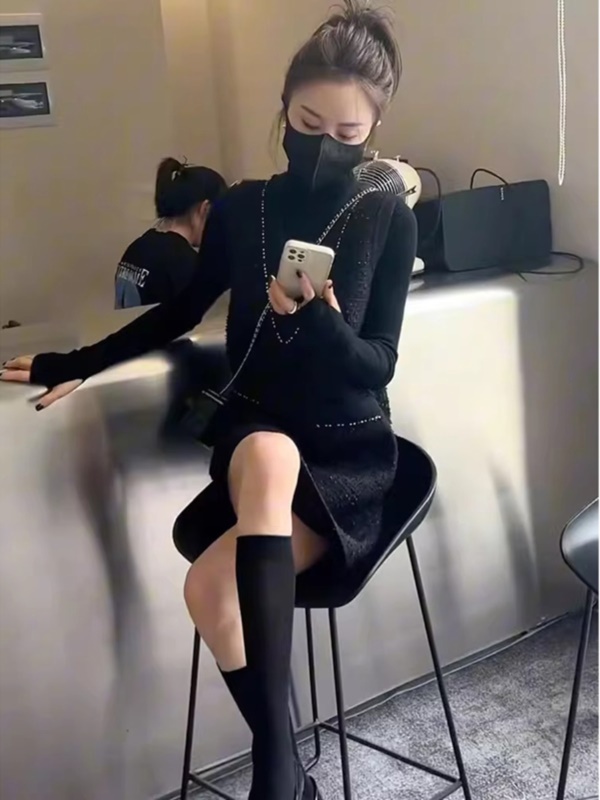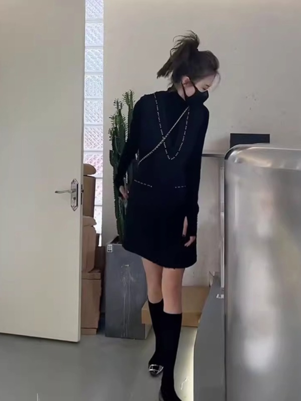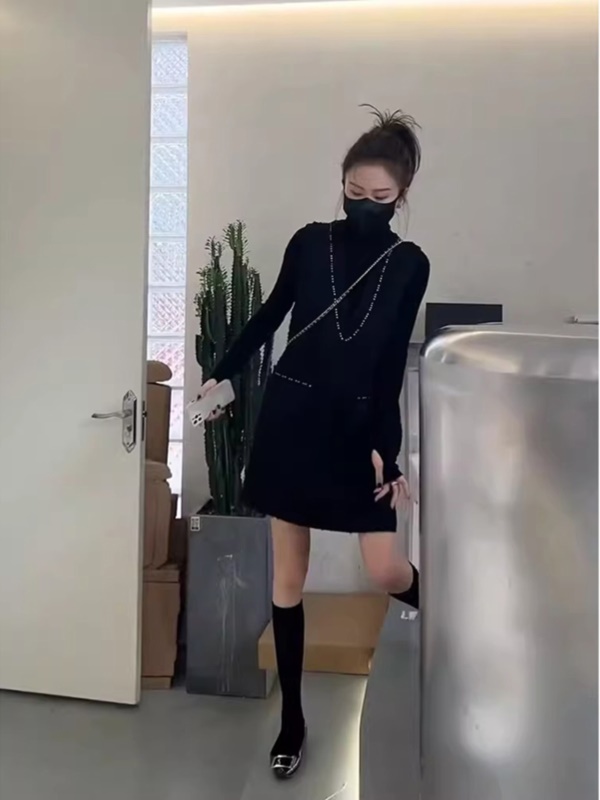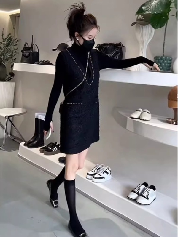 商品名称:小香风气质显瘦黑色背心连衣裙女秋冬小个子穿搭一整套高级感套装