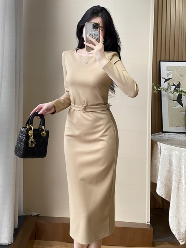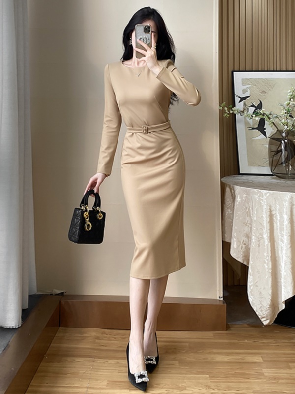 商品名称:高级感修身显瘦包臀连衣裙2025秋装新款女神范气质职业法式长裙女