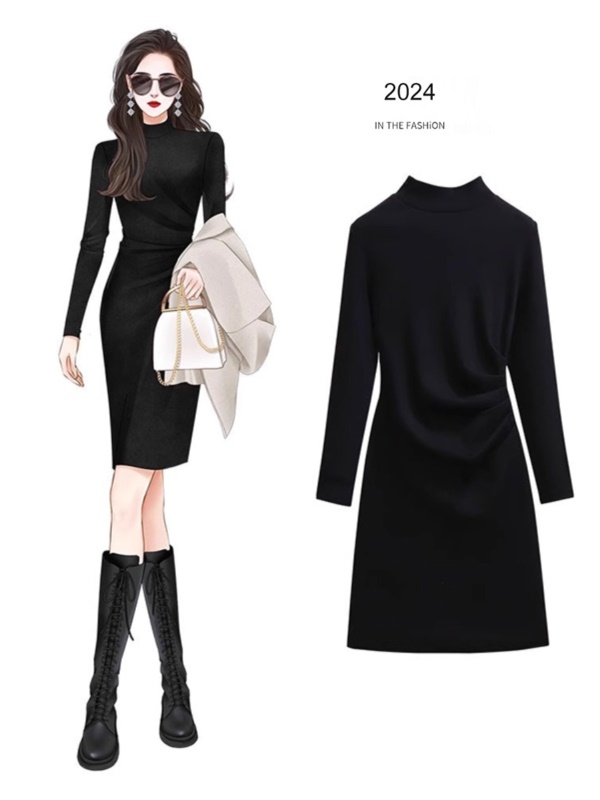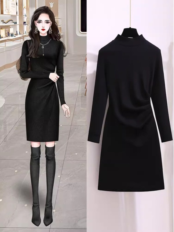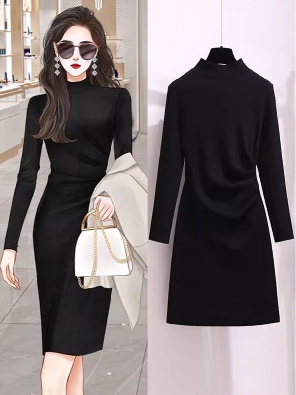 高级感气质包臀毛衣黑色针织连衣裙秋冬女打底配大衣小黑裙小个子