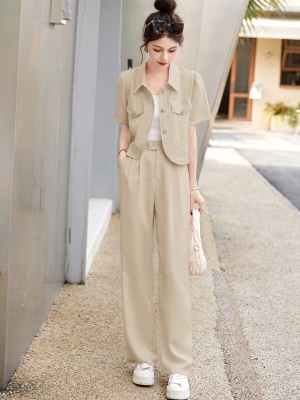 小香风西装阔腿裤套装女夏季2025新款休闲炸街时尚职业爆款两件套