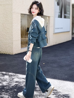 卫衣新中式牛仔套装女2025春秋装新款时髦洋气小个子阔腿裤三件套