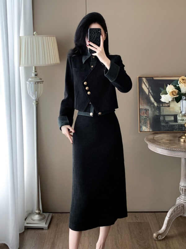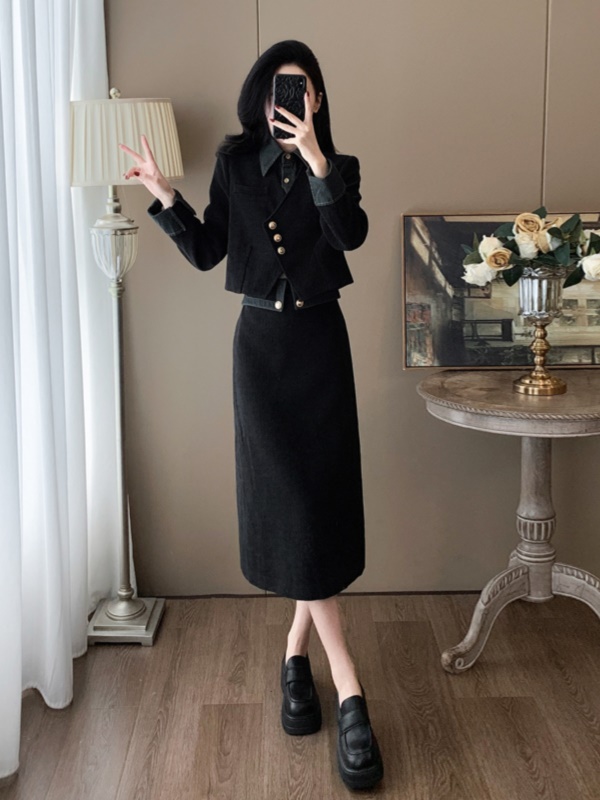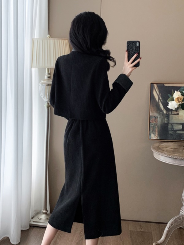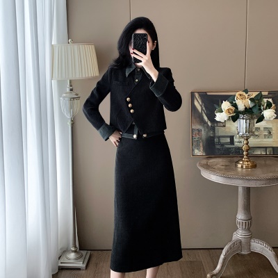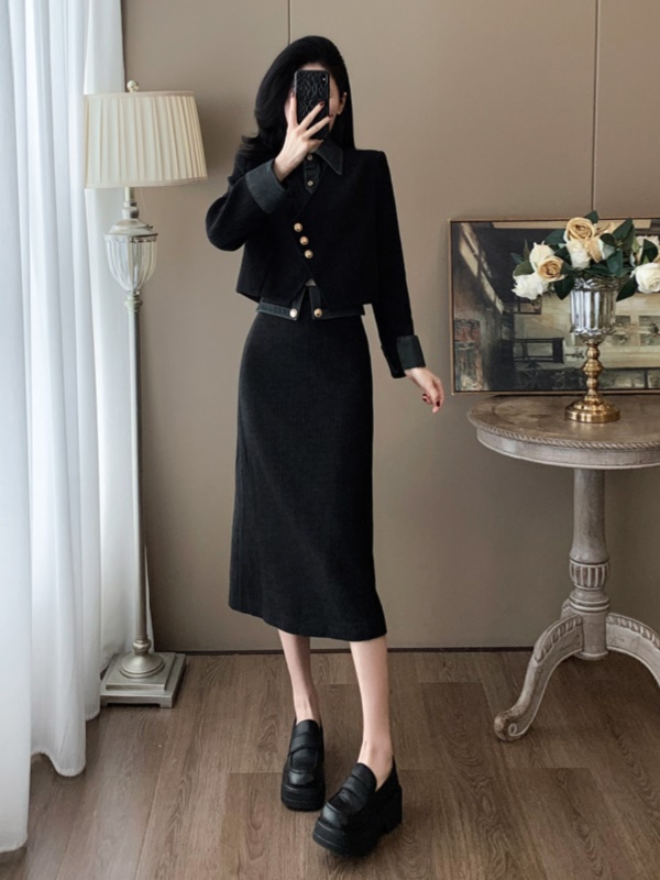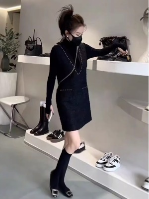 小香风气质显瘦黑色背心连衣裙女秋冬小个子穿搭一整套高级感套装