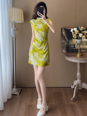 新中式国风旗袍改良连衣裙高级感气质褶皱显瘦裙子女夏季2025新款