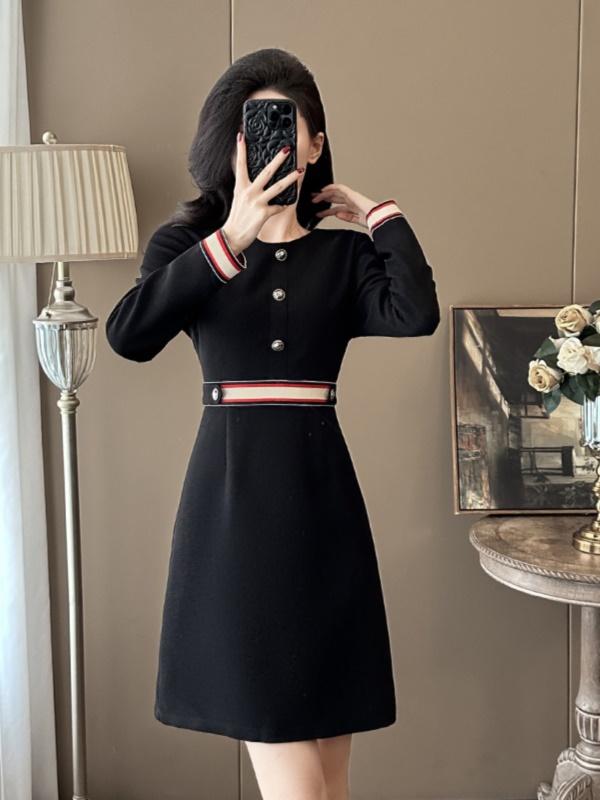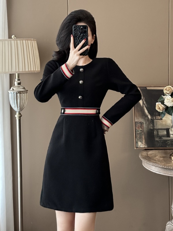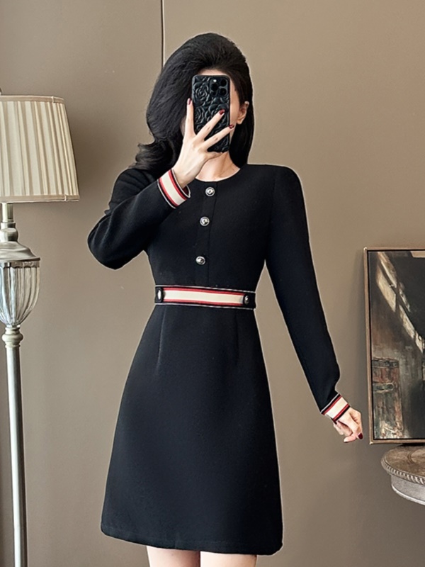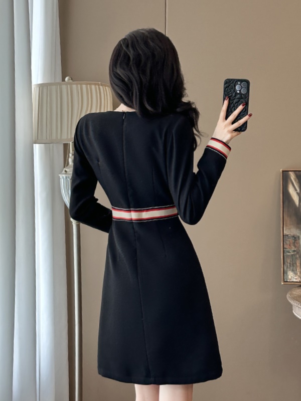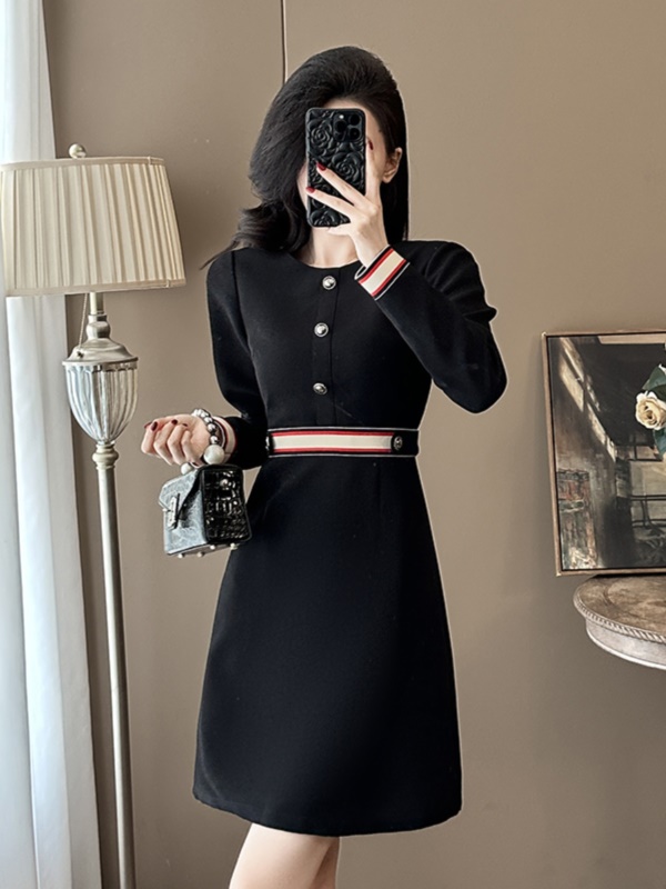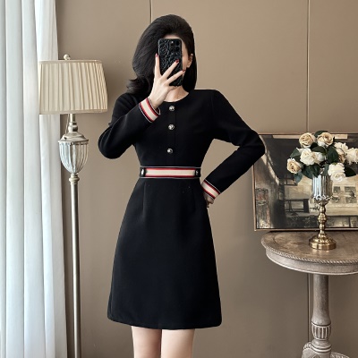 简约OL通勤正式场合气质连衣裙女秋冬季小个子收腰显瘦百搭小黑裙