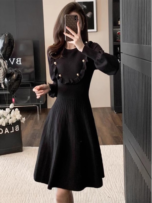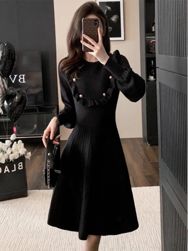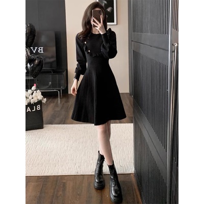 商品名称:黑色针织毛衣连衣裙秋冬季2025新款显瘦内搭小个子配大衣的裙子女