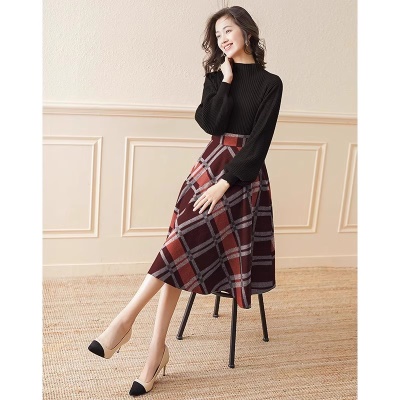 商品名称:小香风毛衣套装气质女神范高级感御姐毛呢格子半身裙子两件套秋冬