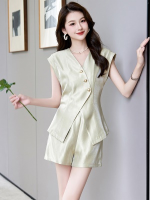 时尚无袖薄西装套装女2025夏装新款小个子显高炸街职业短裤两件套