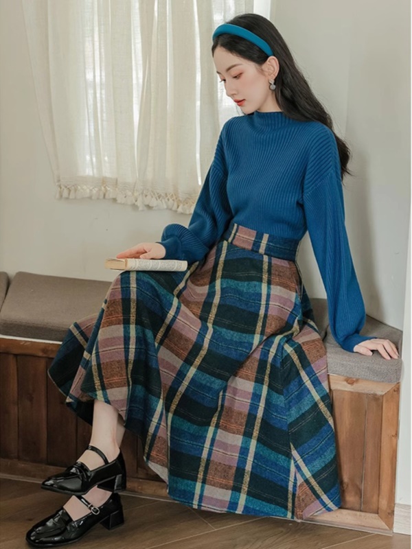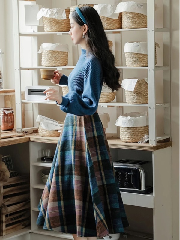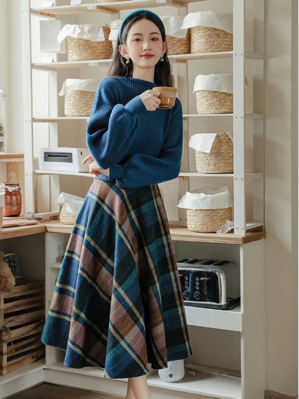 商品名称:复古套装女2025秋冬气质小香风高级感毛衣搭配毛呢半身裙子两件套