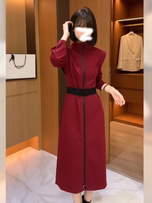 高级感红色连衣裙女秋冬季新年加绒收腰显瘦拉链卫衣裙中长裙气质