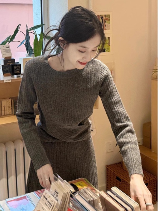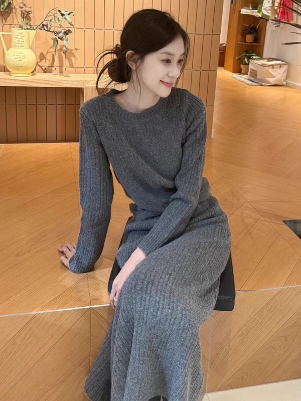 商品名称:慵懒高级感灰色长袖针织毛衣连衣裙女秋冬大衣内搭打底两件套装裙