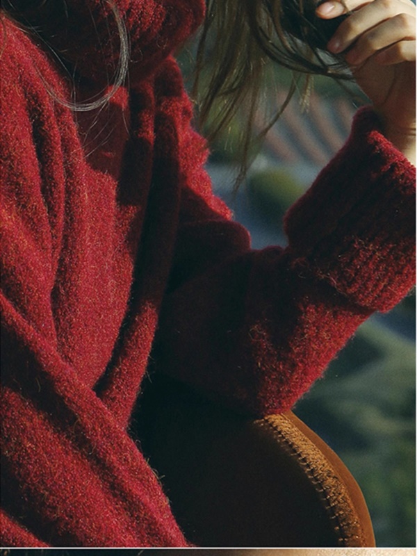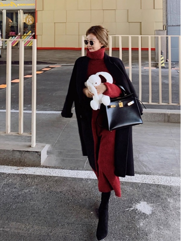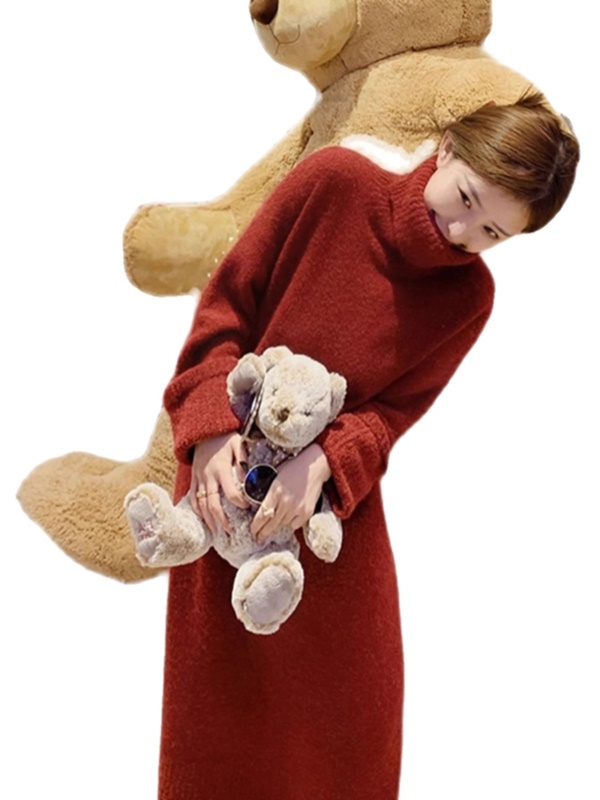 商品名称:秋冬季2025新款女装高级感长款毛衣裙红色高领针织内搭打底连衣裙