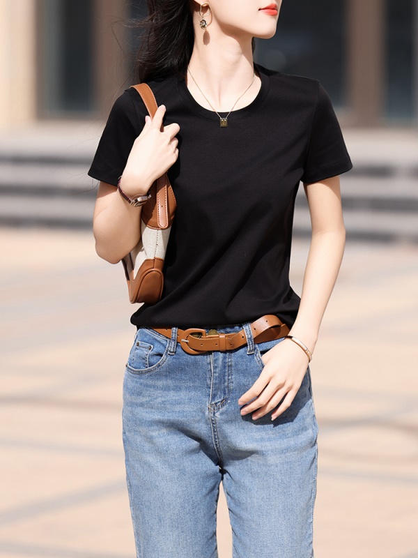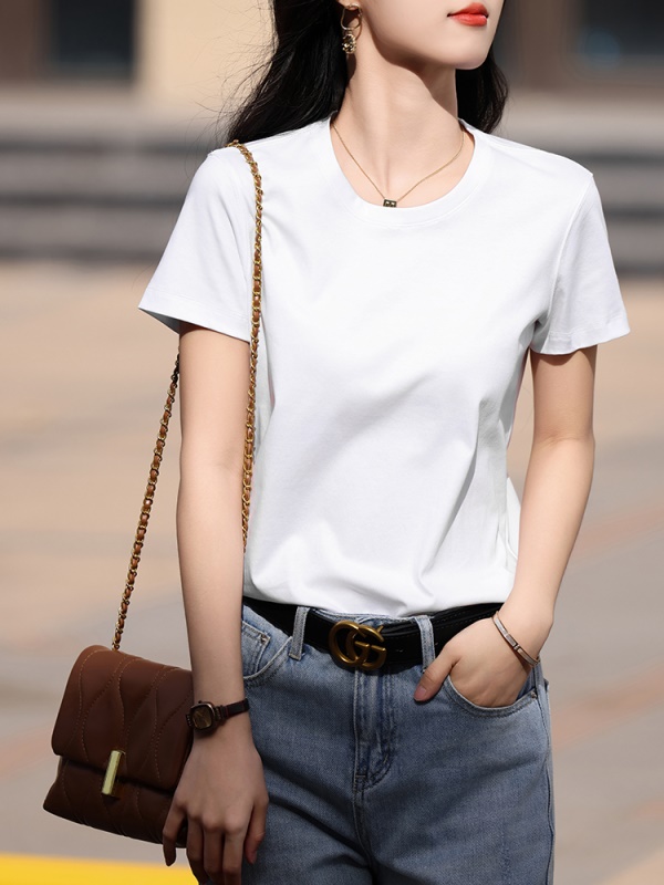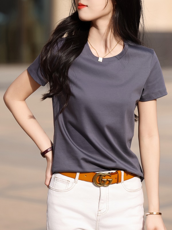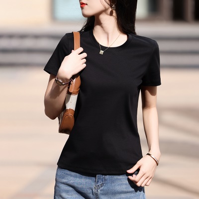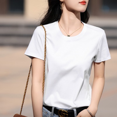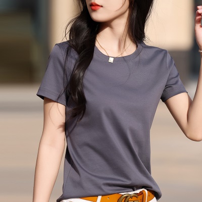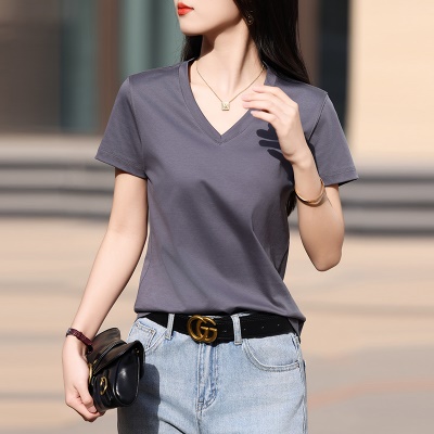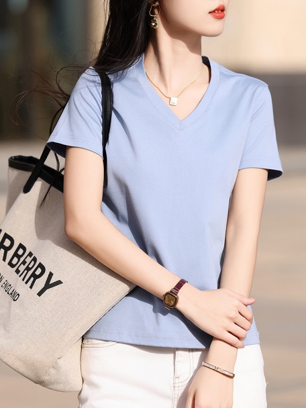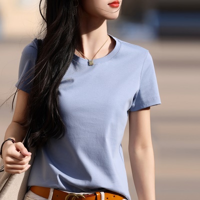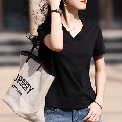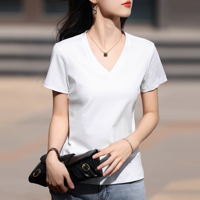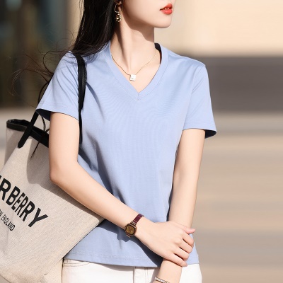 商品名称:80s液氨短袖t恤女2025新款爆款圆领正肩体恤打底衫内搭上衣V领夏