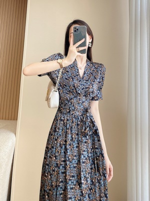 海边度假沙滩连衣裙女夏季2025新款法式复古气质收腰碎花长裙高端