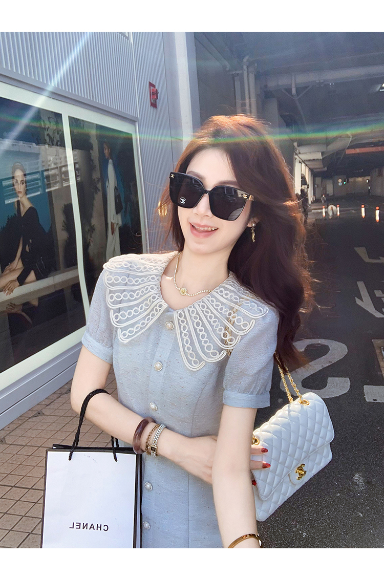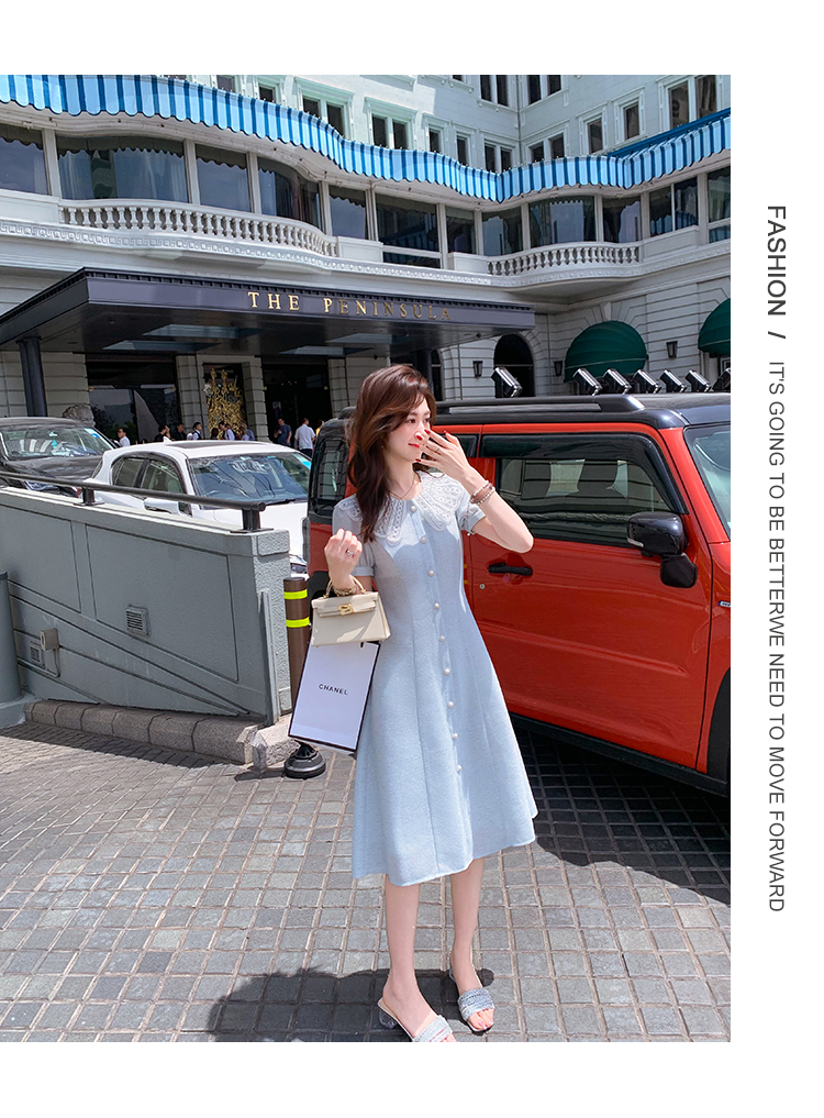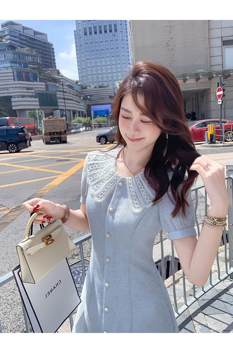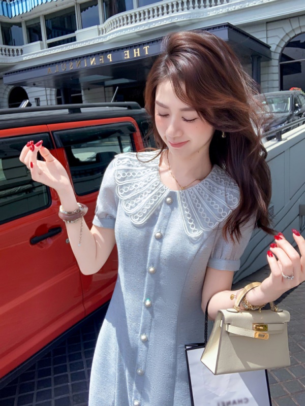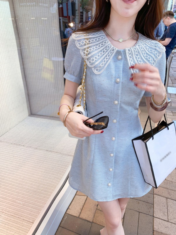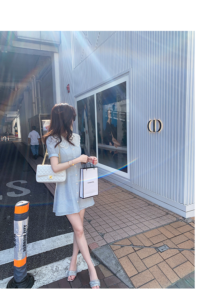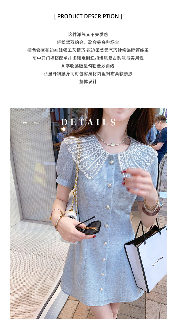 商品名称:娃娃领小香风法式连衣裙女新款今年流行气质收腰裙子