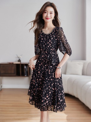 茶歇法式碎花雪纺连衣裙女夏2025夏季新款名媛气质显瘦高级感裙子