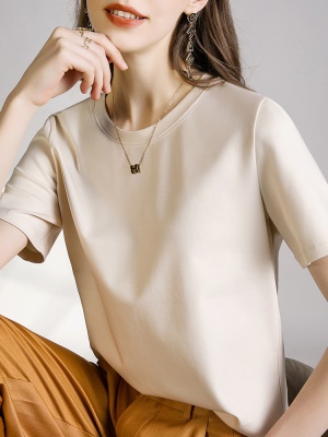 80s液氨白色短袖正肩t恤女2025春夏丝光棉V圆领气质打底衫体恤潮