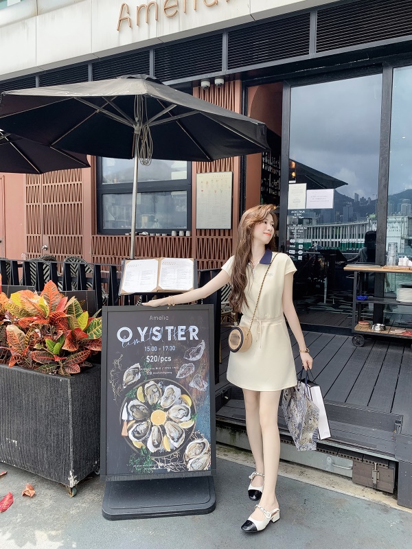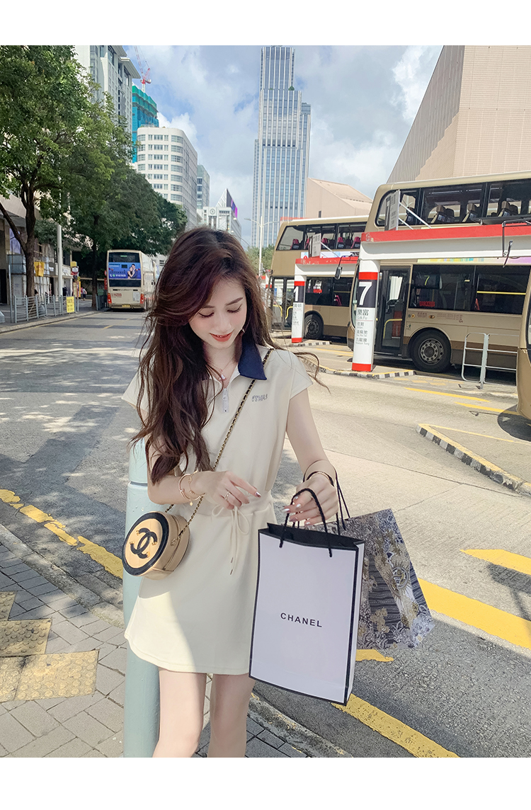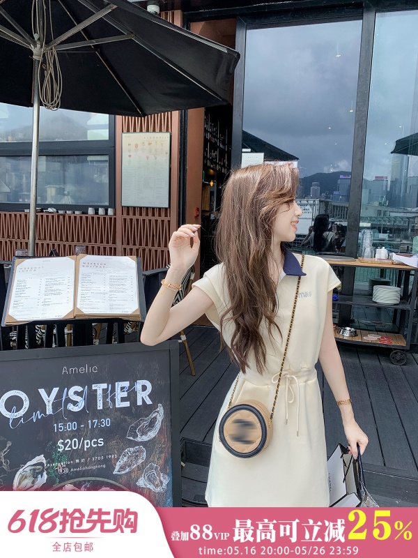 商品名称:小清新翻领连衣裙女2025夏季新款气质收腰a字短裙子