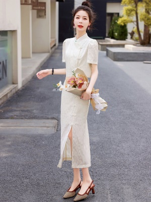 旗袍套装女年轻款改良2023新款夏装新中式国风成套搭配长裙两件套
