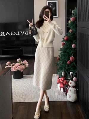 杏色高级感针织半身裙套装女秋冬2025新款显瘦气质穿搭毛衣两件套