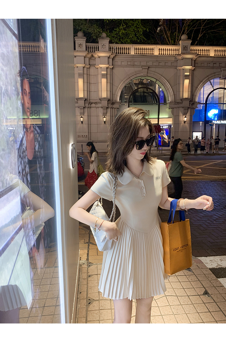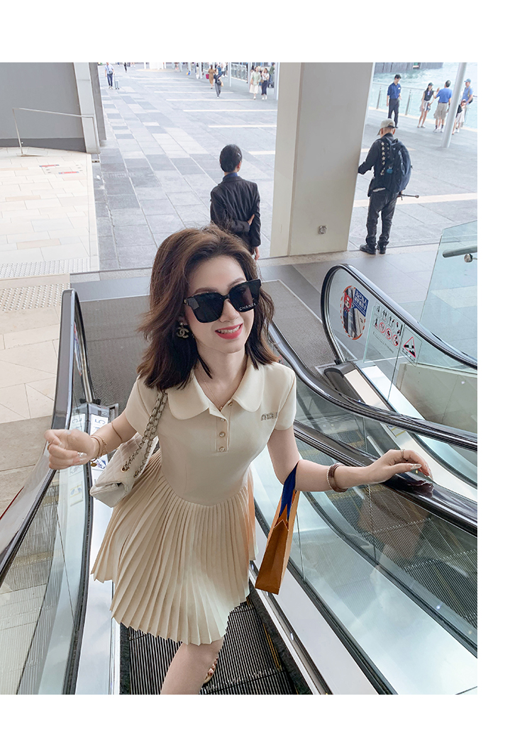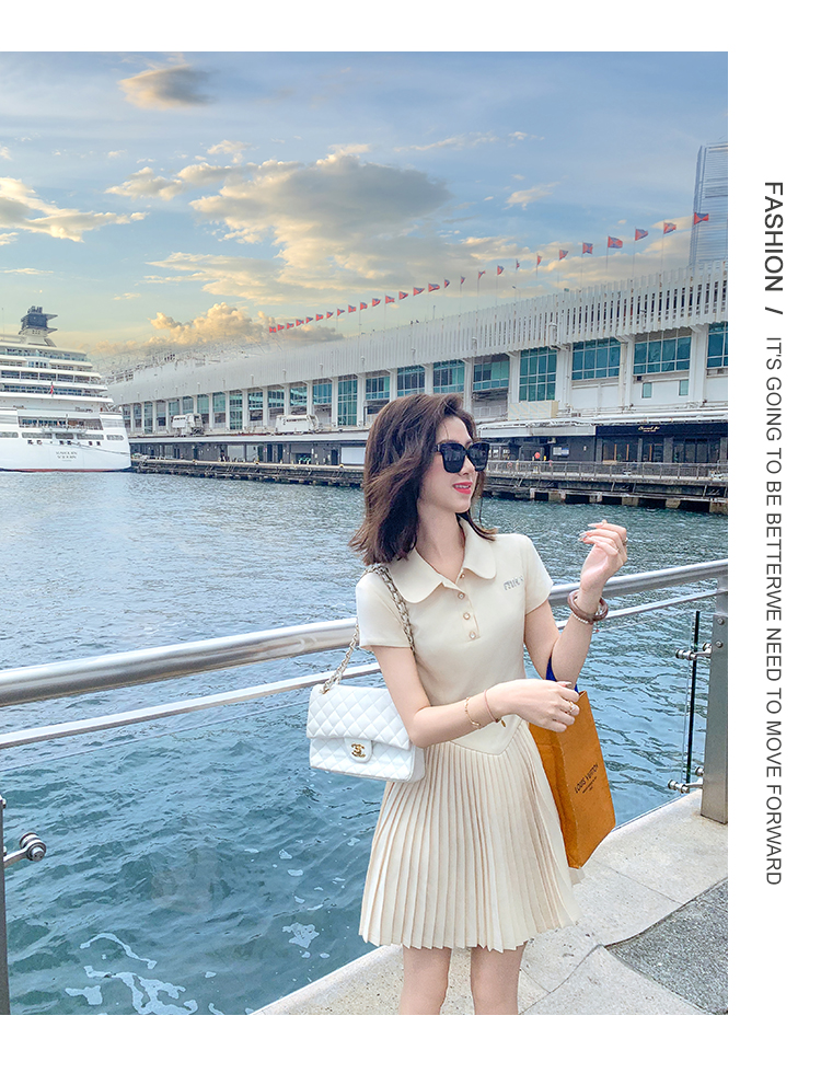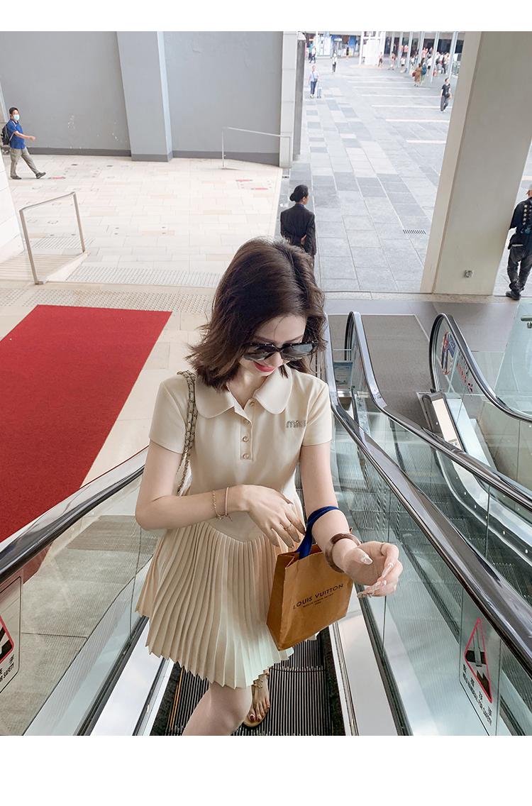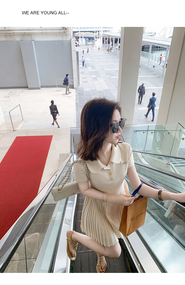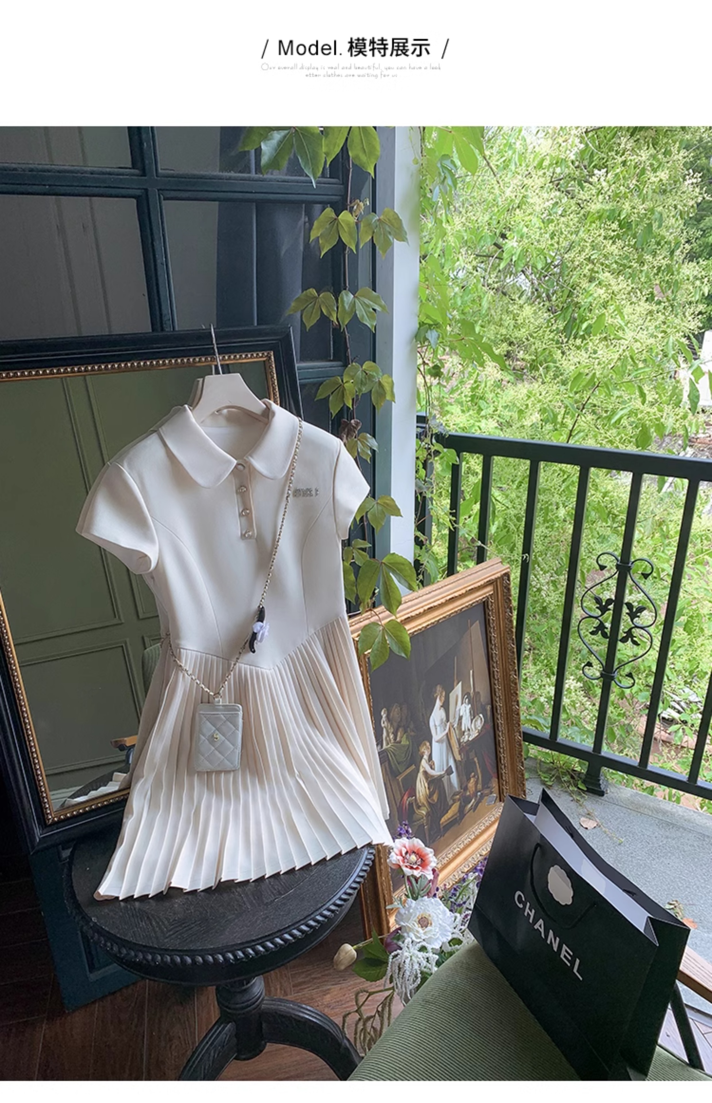 商品名称:[限时折扣] 小香风短袖连衣裙女新款娃娃领拼接百褶裙子