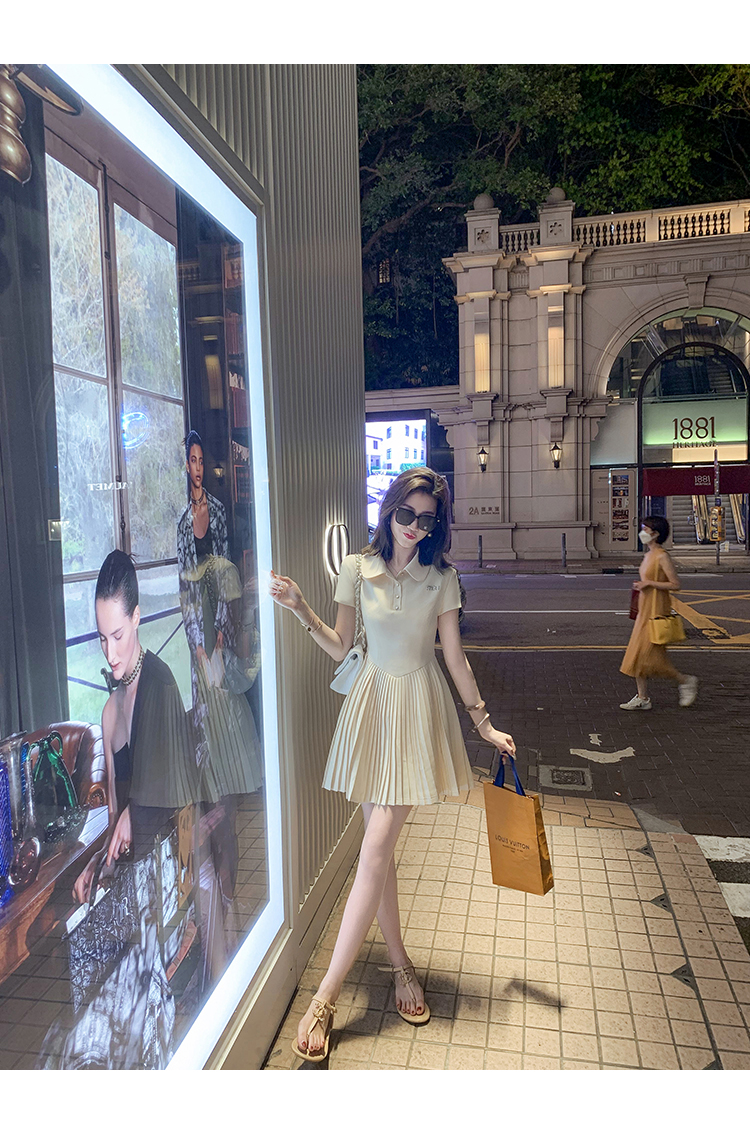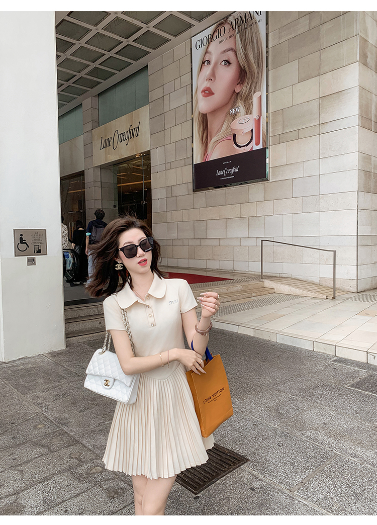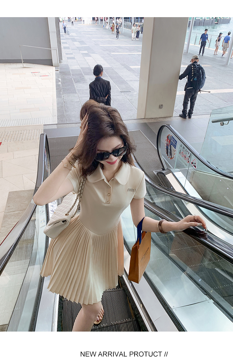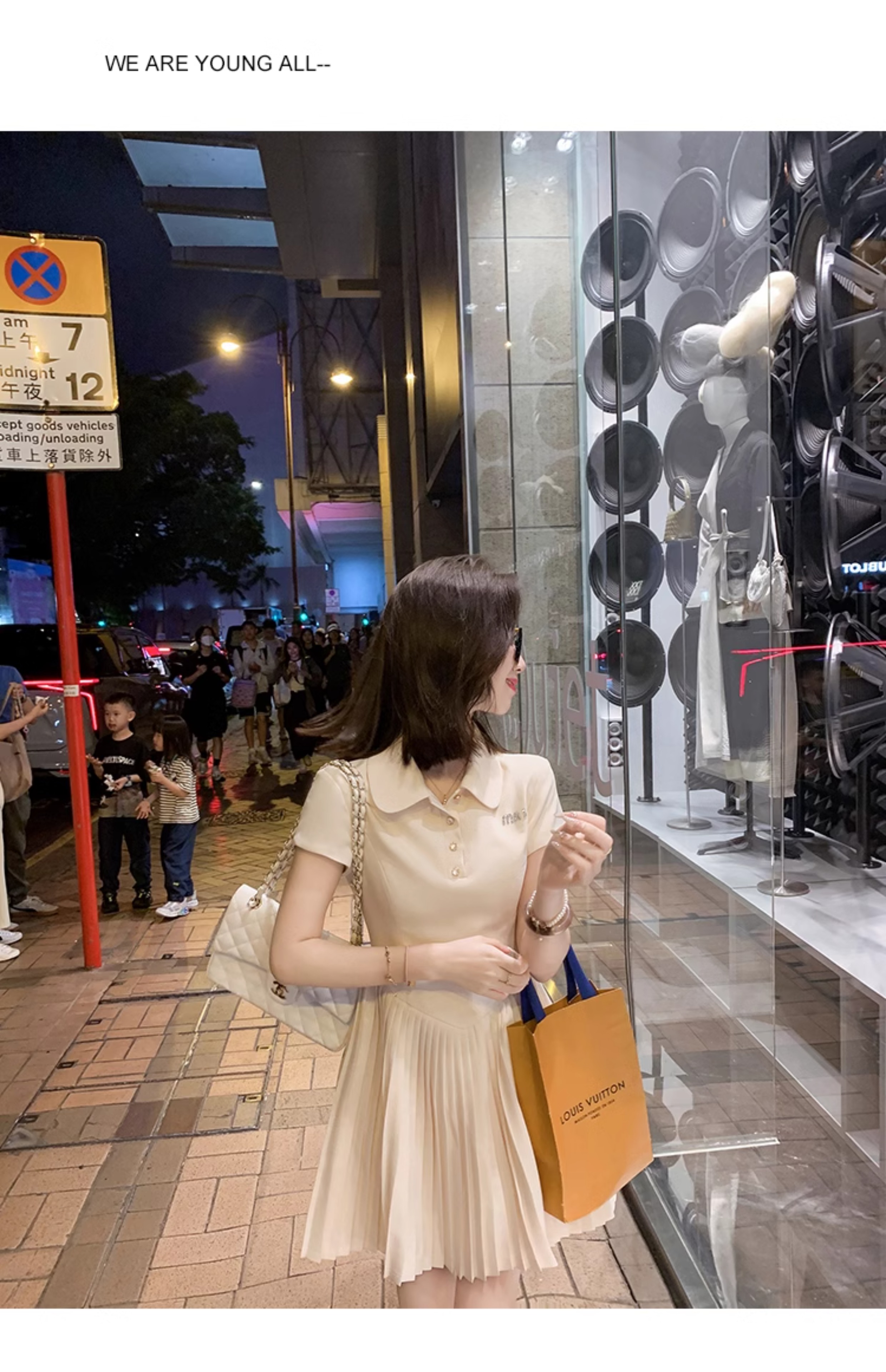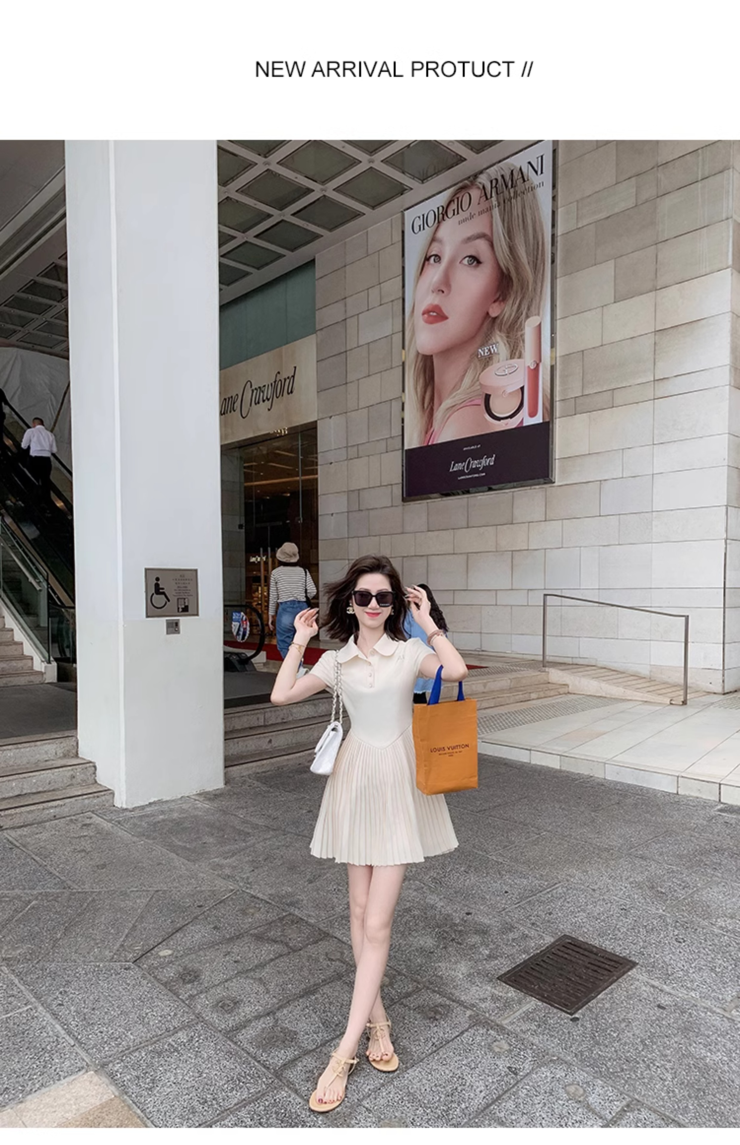 商品名称:[限时折扣] 小香风短袖连衣裙女新款娃娃领拼接百褶裙子