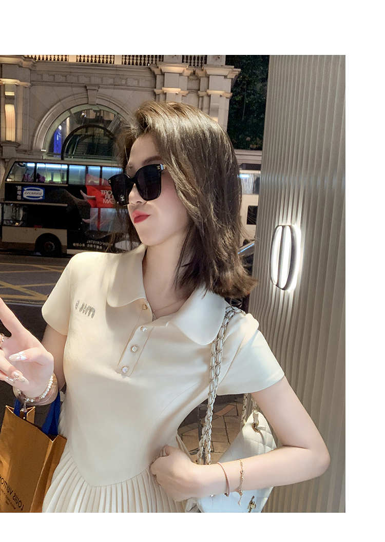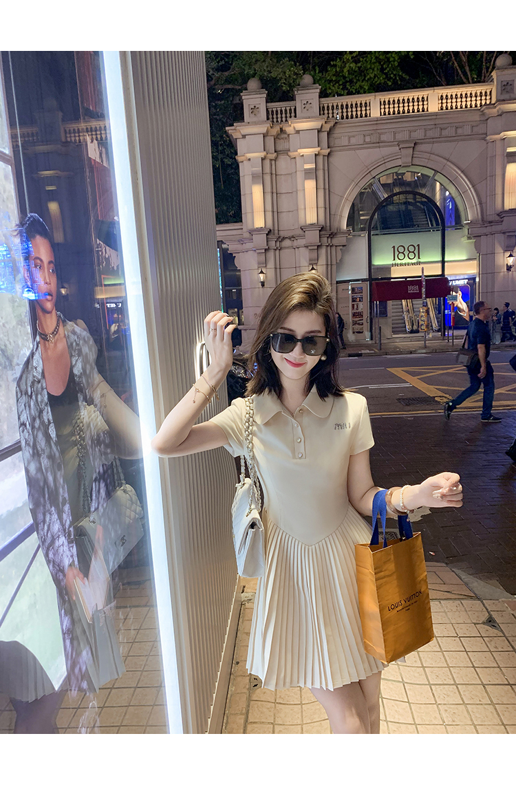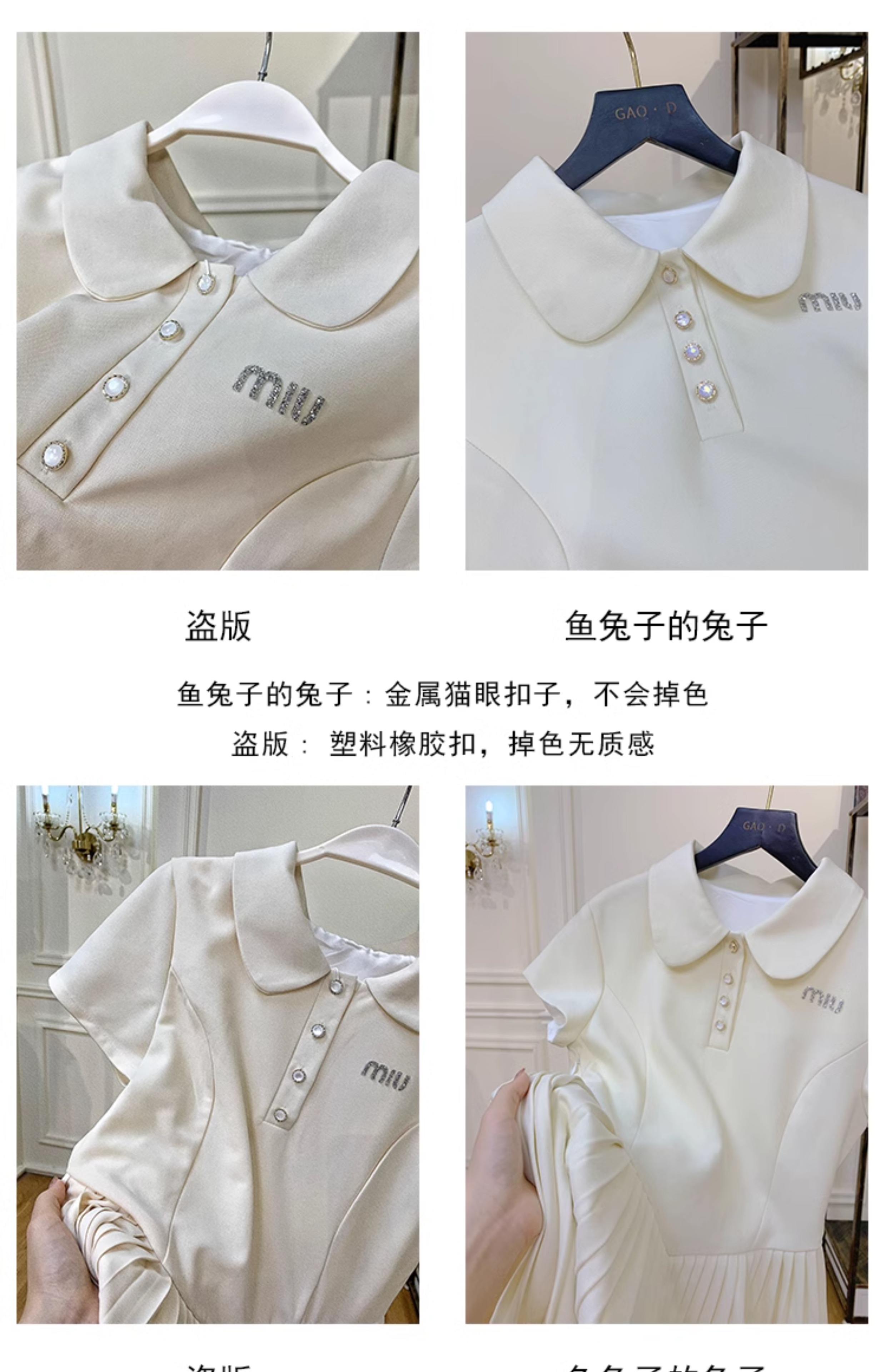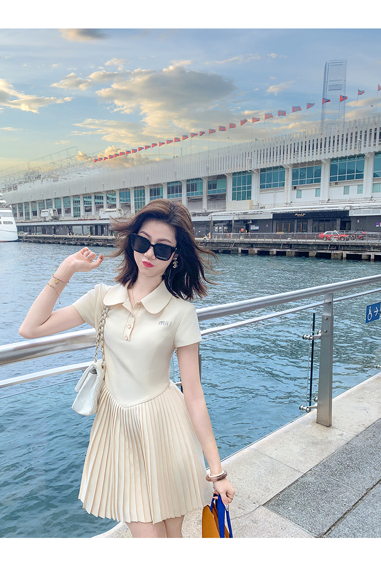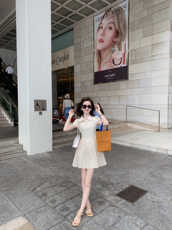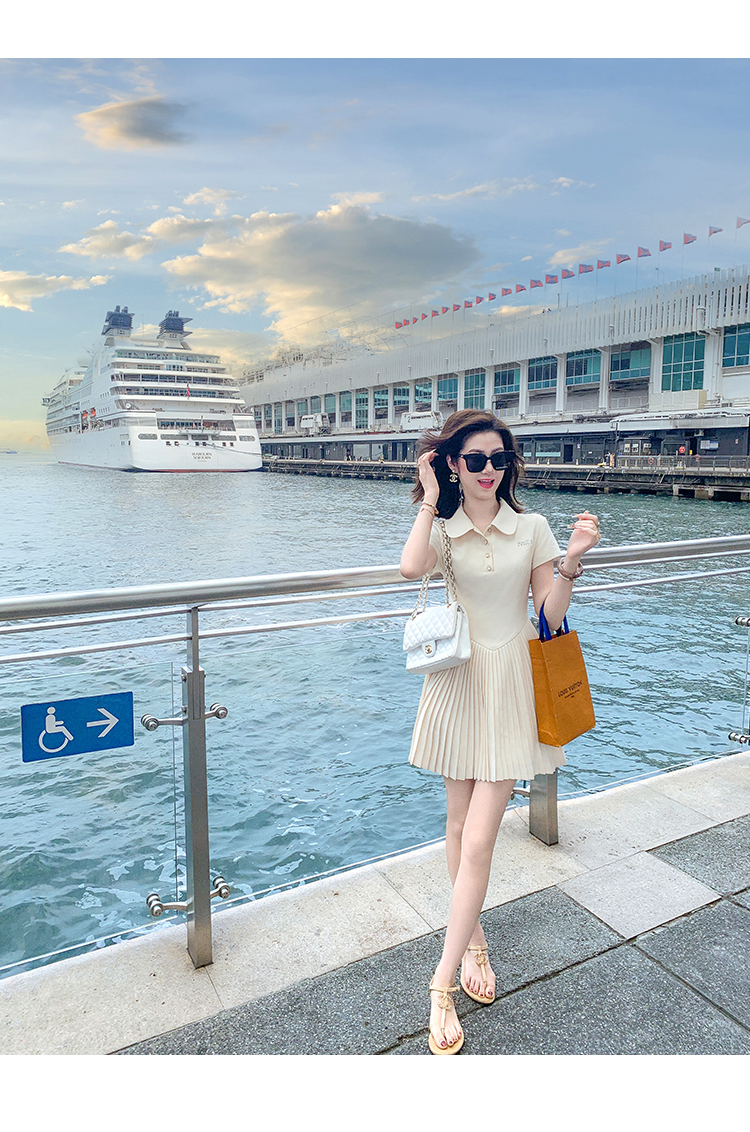 商品名称:[限时折扣] 小香风短袖连衣裙女新款娃娃领拼接百褶裙子