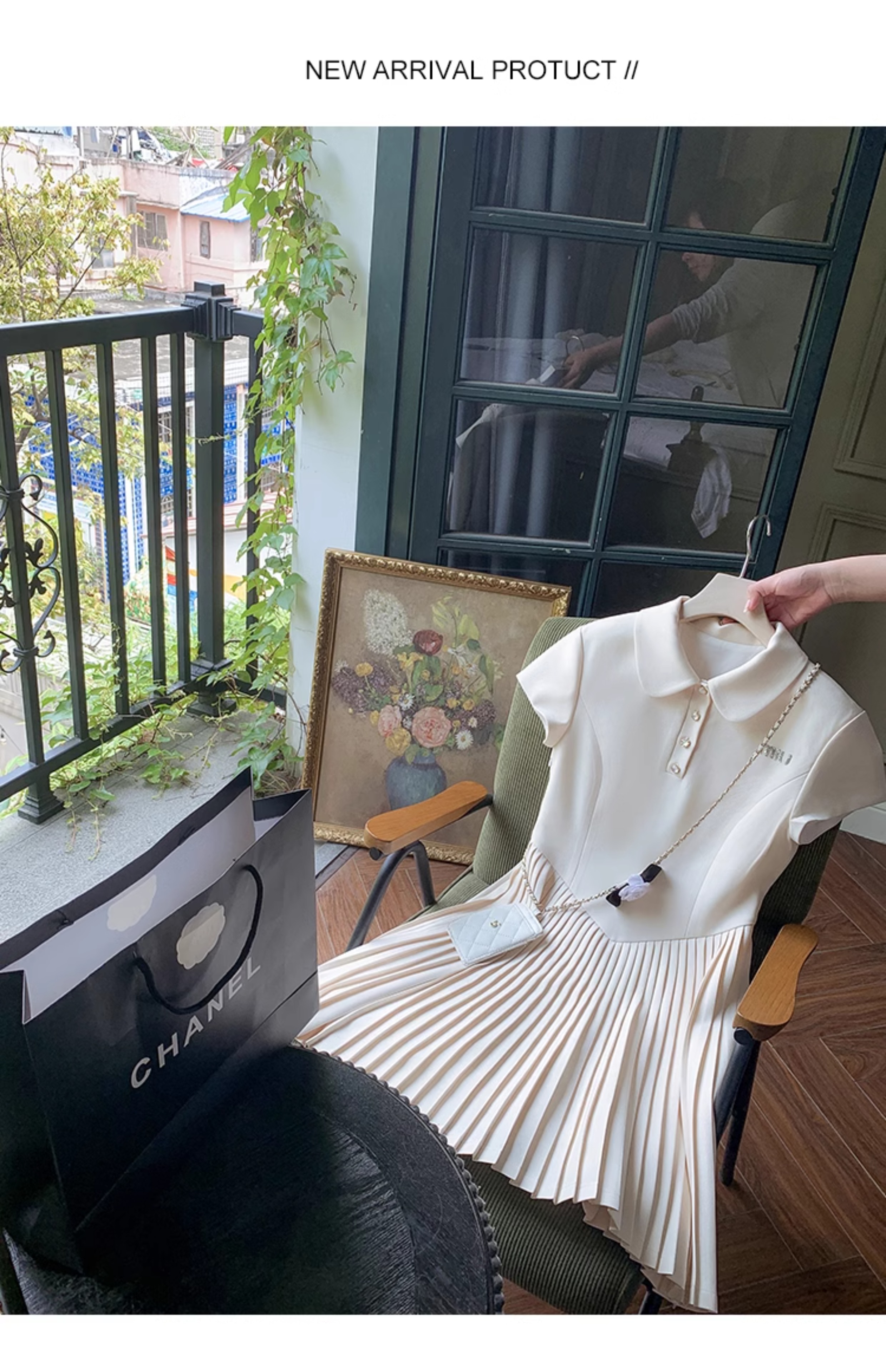 [限时折扣] 小香风短袖连衣裙女新款娃娃领拼接百褶裙子