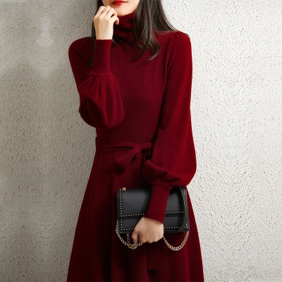 秋冬新款女装法式复古名媛毛衣长裙针织打底内搭红色新年连衣裙子