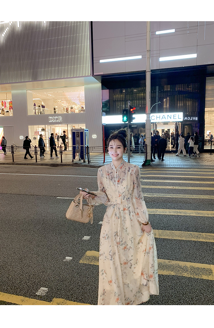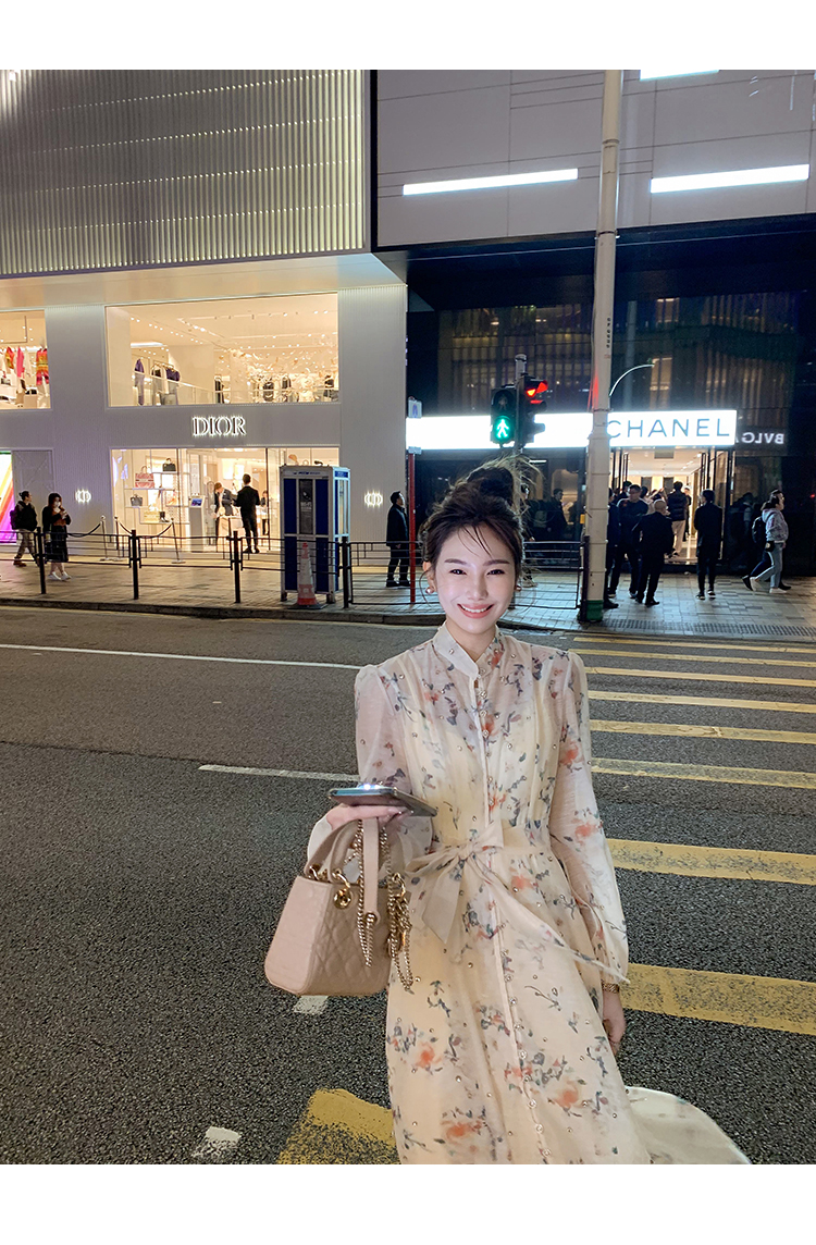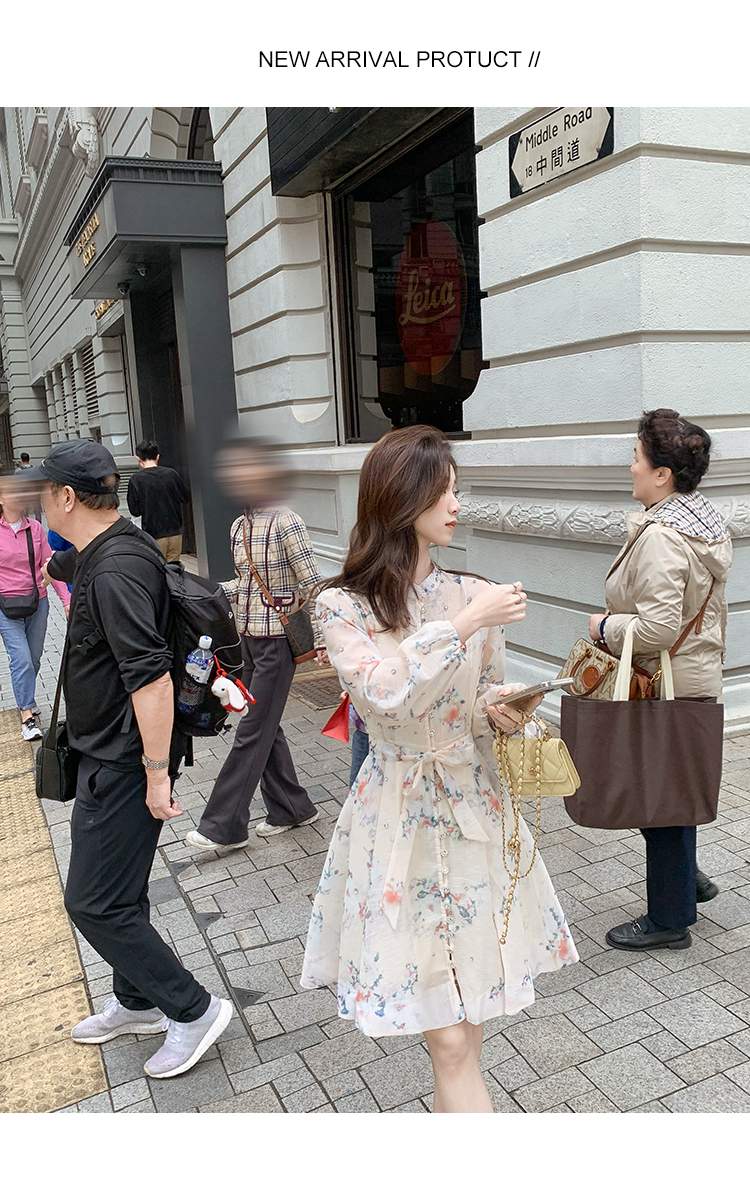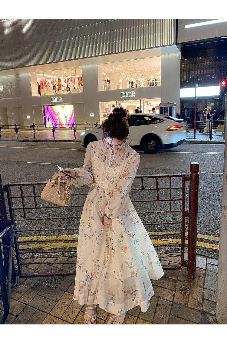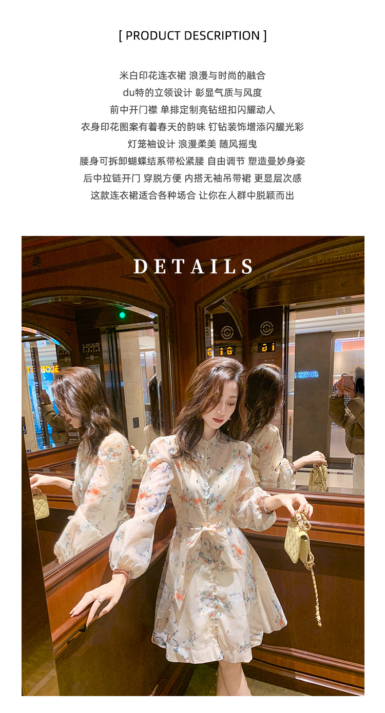 小香风印花系带连衣裙女2025春秋新款巨好看的裙子