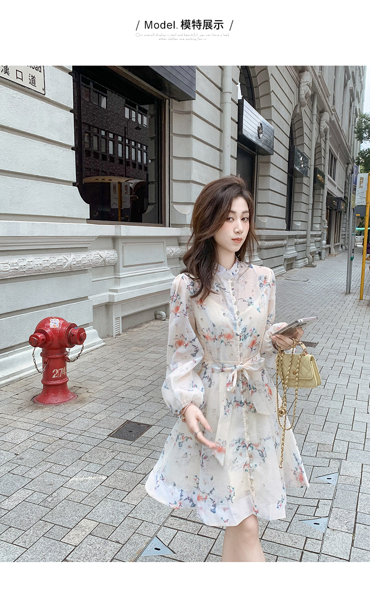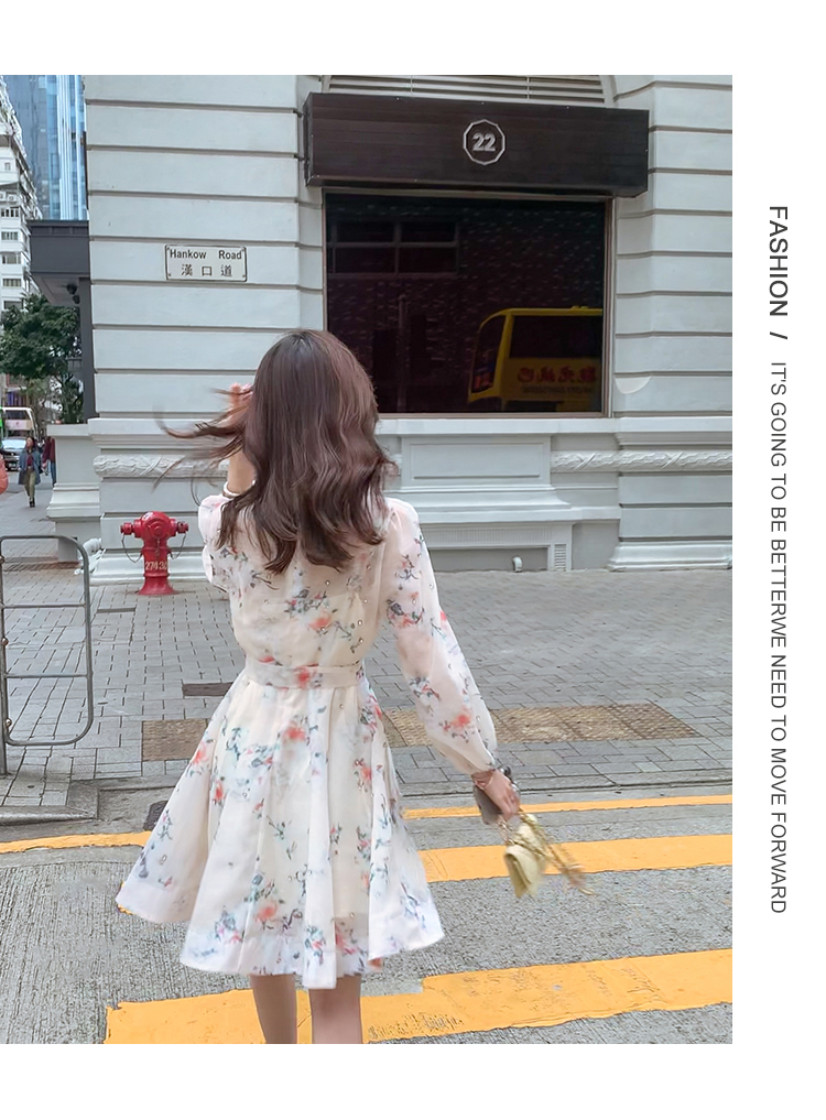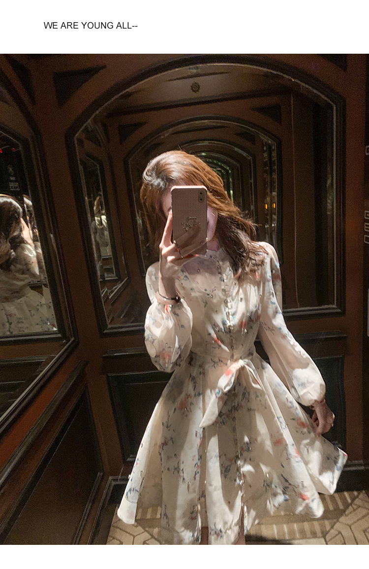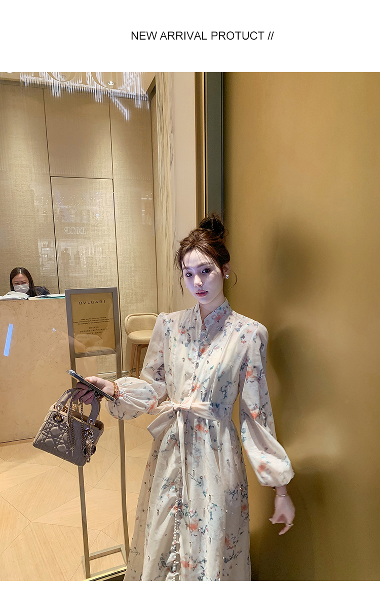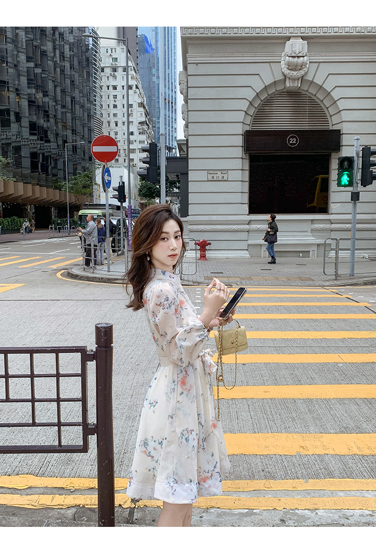 小香风印花系带连衣裙女2025春秋新款巨好看的裙子