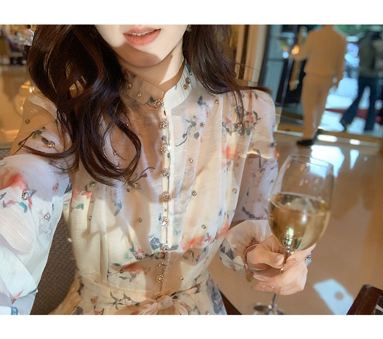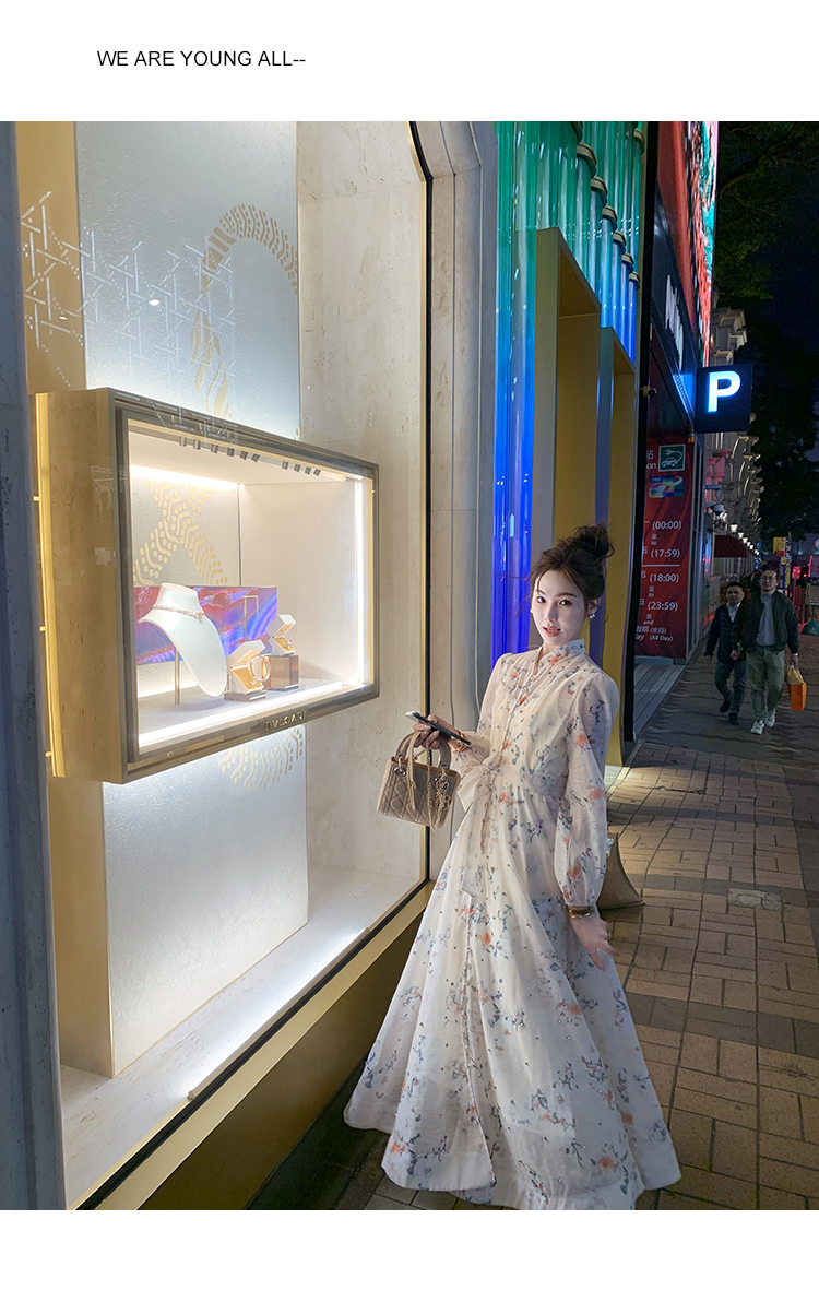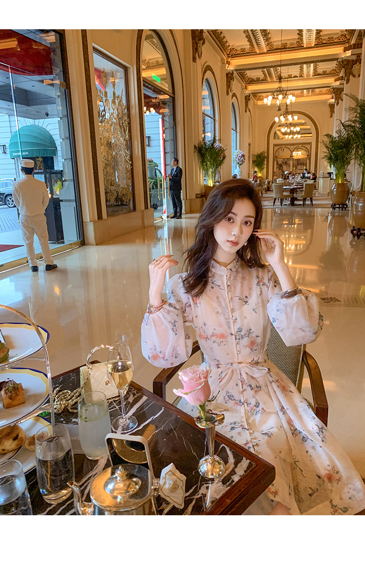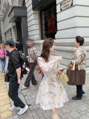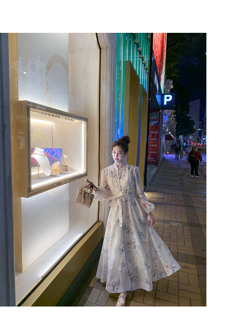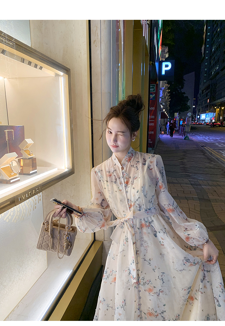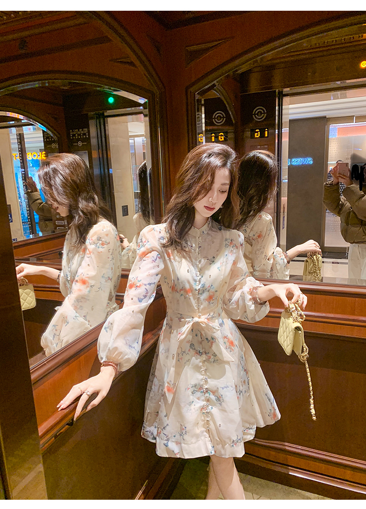 小香风印花系带连衣裙女2025春秋新款巨好看的裙子