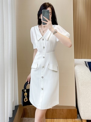 气质白色小香风短袖连衣裙2025年新款夏季法式小个子修身显瘦裙子