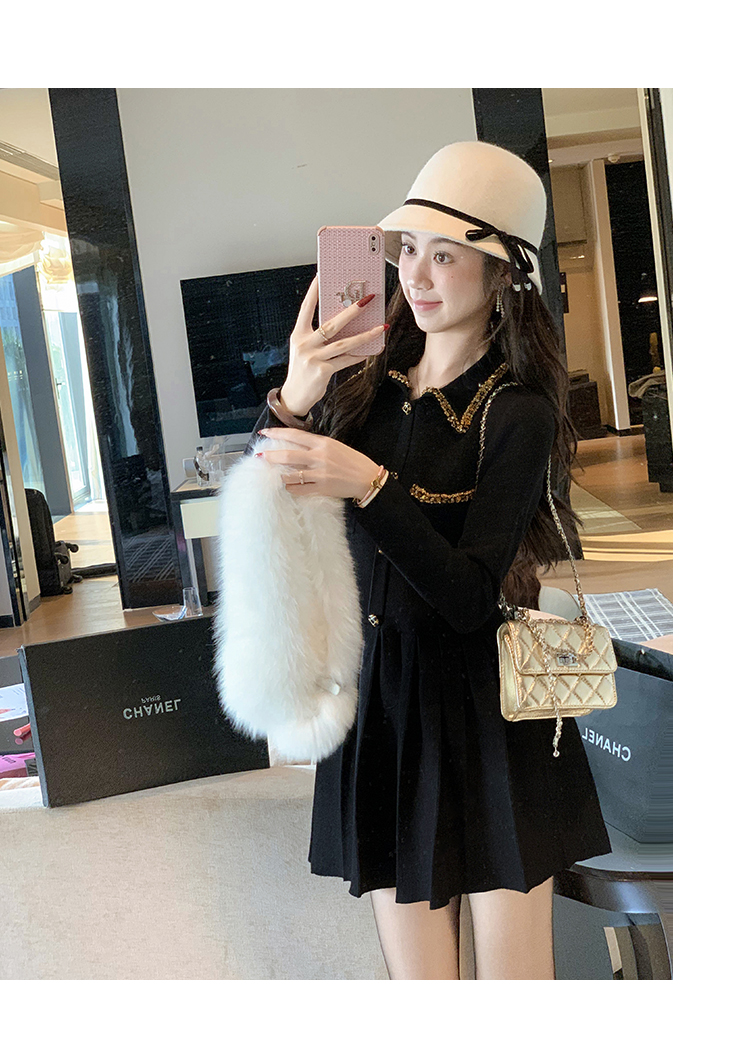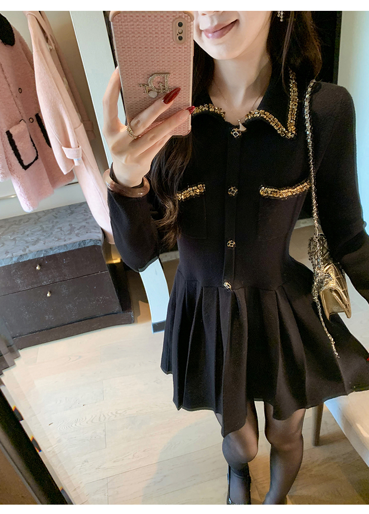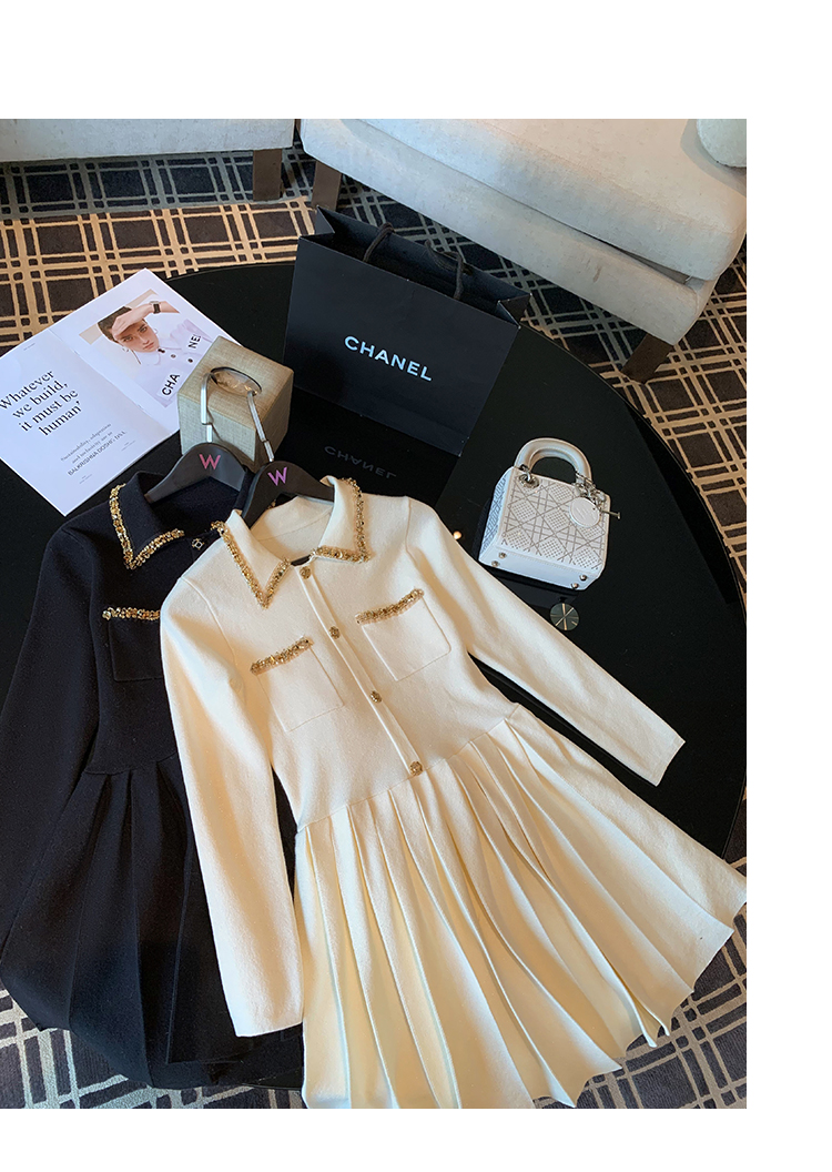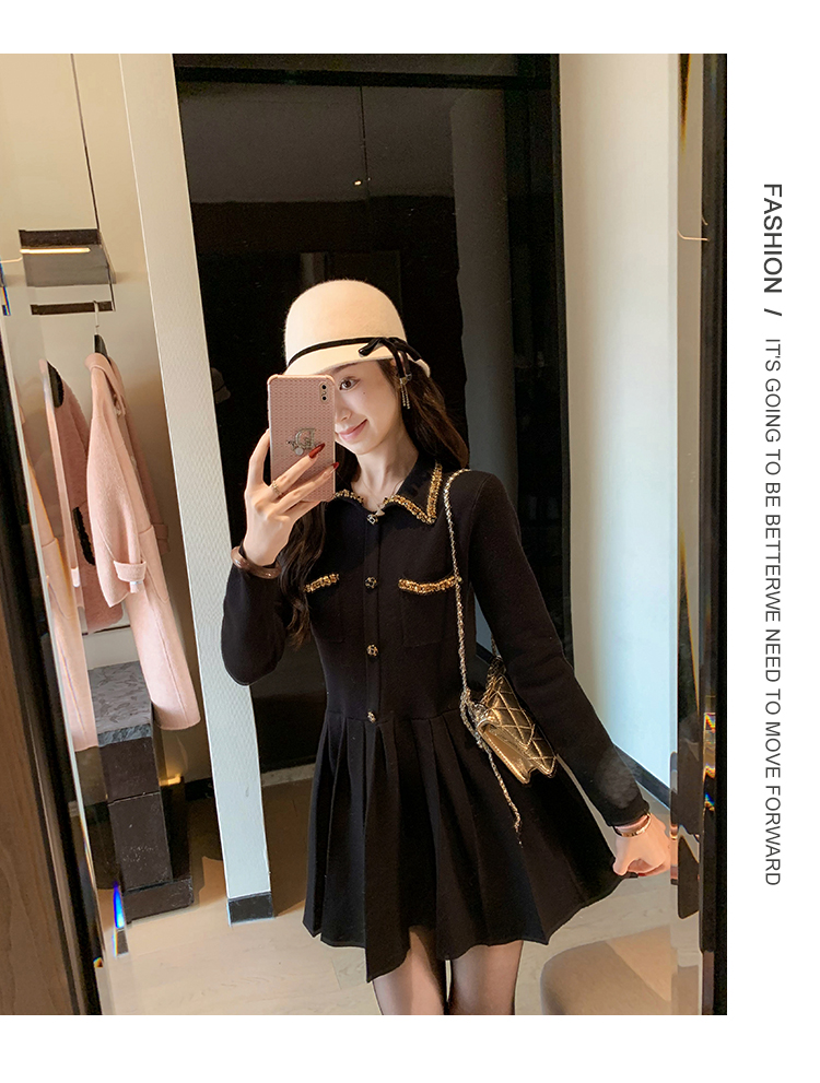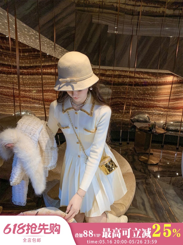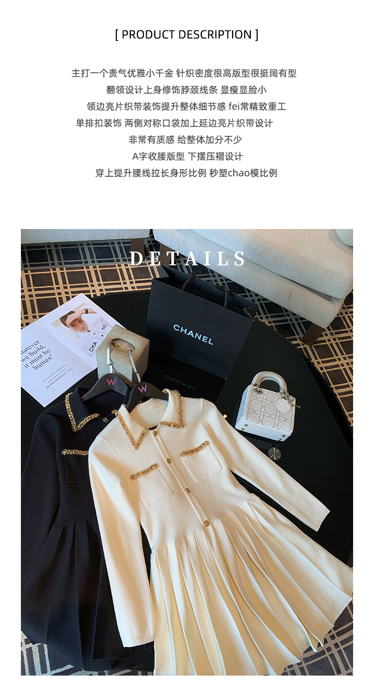 商品名称:法式千金针织连衣裙女春秋2025新款百褶打底裙子